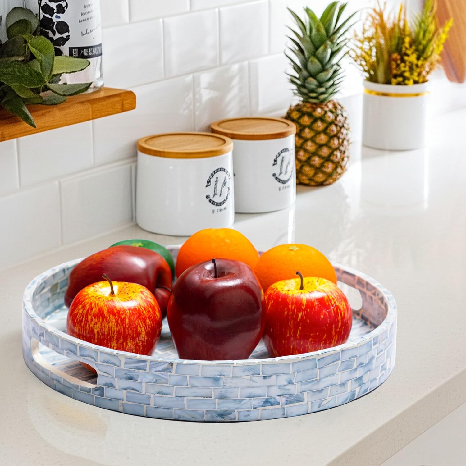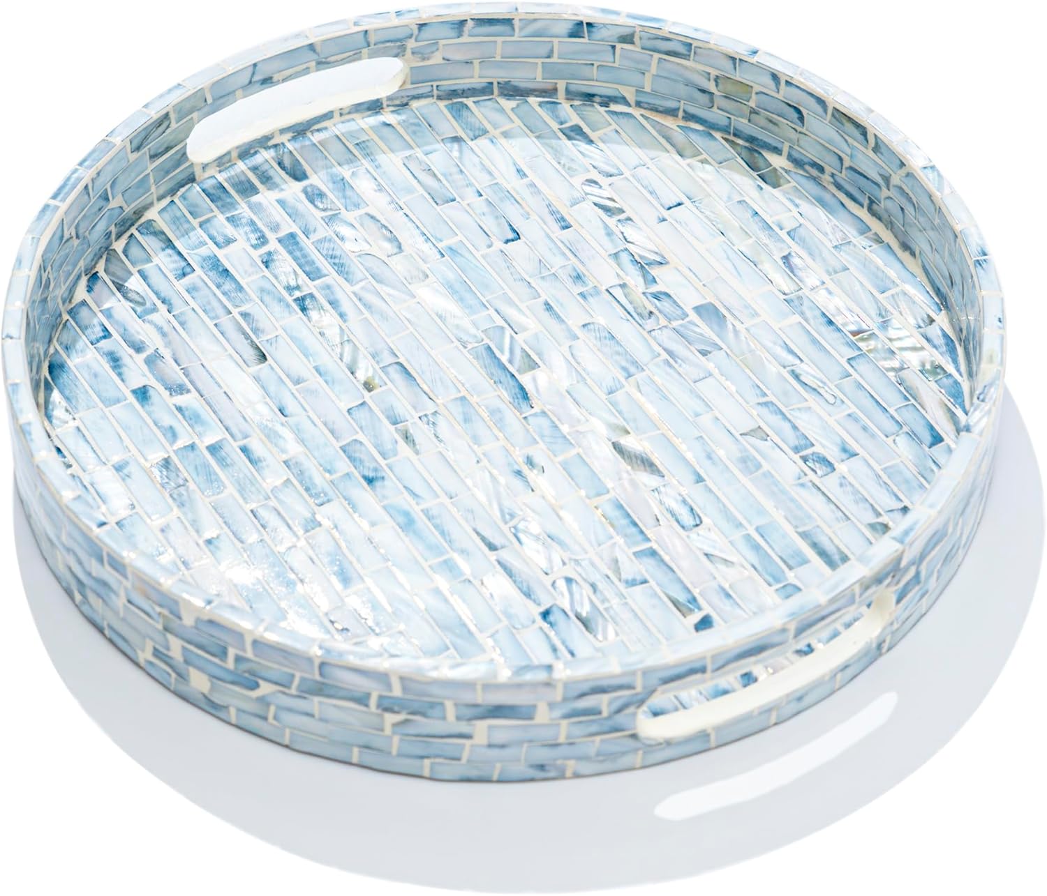 • STYLISH FLORAL TRAYS with the great workmanship by Vietnamese artisans, flawlessly finished with strong wood core and blue floral pattern well-sorted MOTHER OF PEARL SHELLS inlayed on the surface creates an elegant handmade centerpiece to brighten your decoration, best matches any beach/coastal nauticaNew Home Gifts For Homel theme.