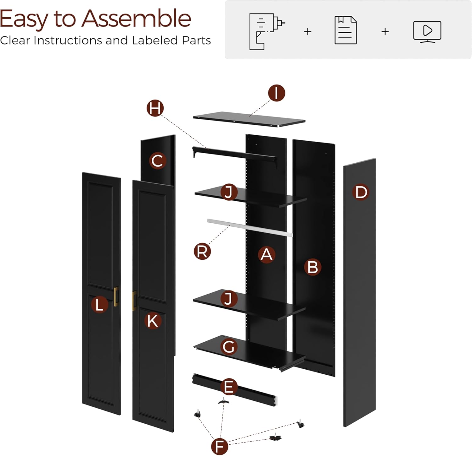 • Practical design: There are magnets on the black wardrobe door so you can easily close and lock the door. The clothing cabinet has an anti-toppling design and two reserved holes on the back, which can be installed on the wall without worrying about tipping over due to placing too many items.