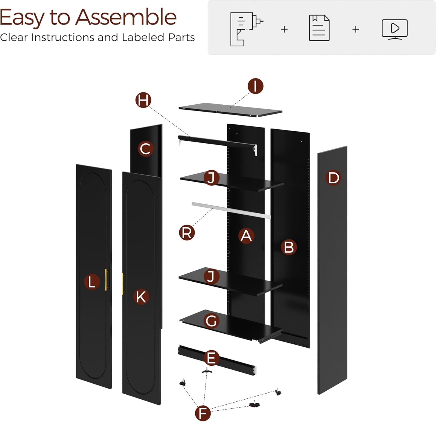 • Easy Installation: Our wardrobe armoire comes with clear and complete parts and detailed installation instructions. One person can also assemble it quickly. Upgrade your bedroom storage with a high wardrobe!
