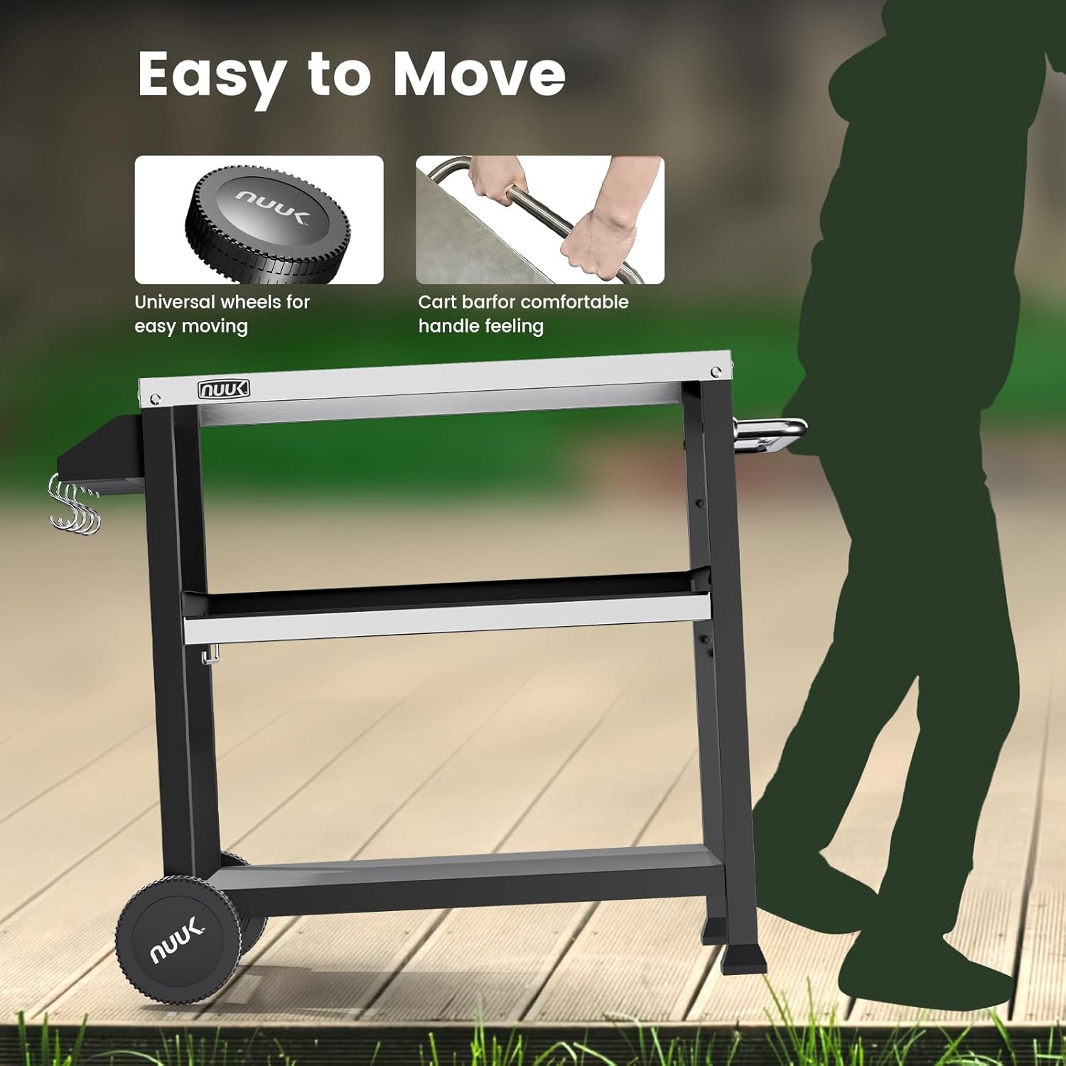 • NUUK GRILL CART - Featuring three layers outdoor cooking table offers secure storage for essentials like utensils, food, condiments, and tableware.Ideal for gatherings, barbecues, or leisure time in your backyard.