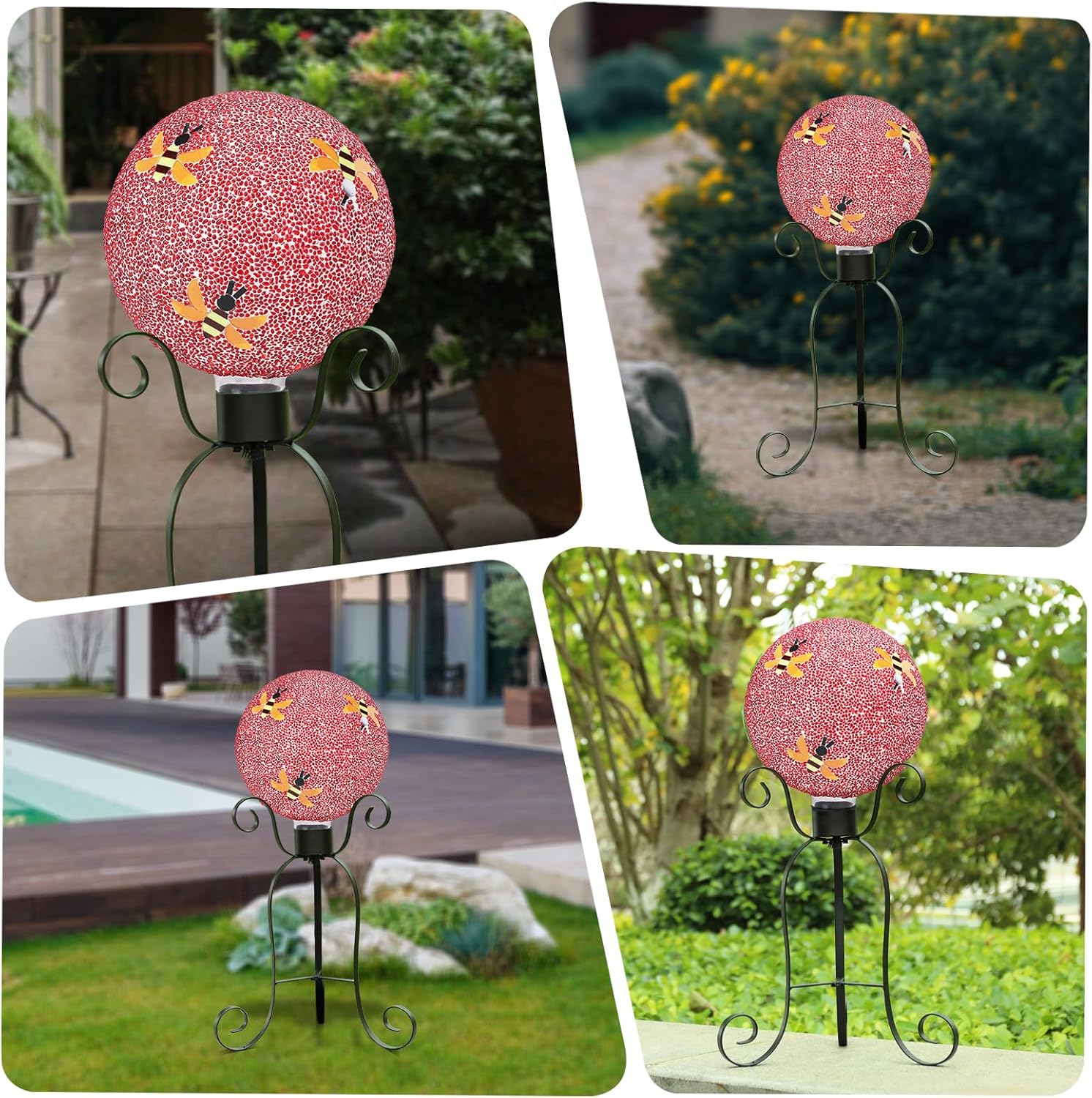 VCUTEKA Gazing Ball, 8" Glass Gazing Balls Sphere for Garden Lawn Outdoor Ornament Yard Decorative, Bee