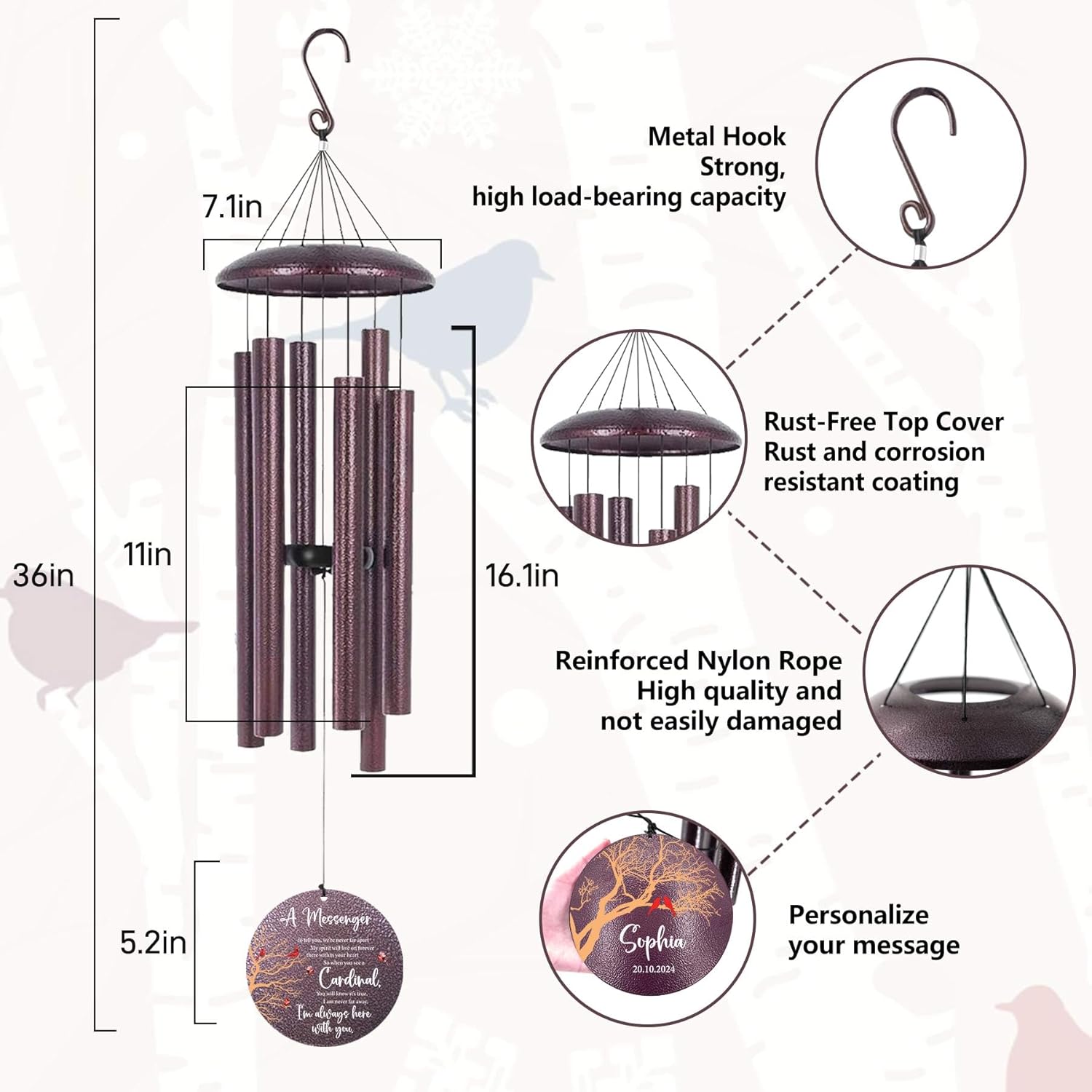 • THOUGHTFUL GIFT: The sympathy wind chime comes with exquisite gift box securely packaged, also you can choose a gift card, customized plus gift card which is excellent condolence gift for the loss of a dad, mom, son, daughter, brother, sister, bring comfort to them.