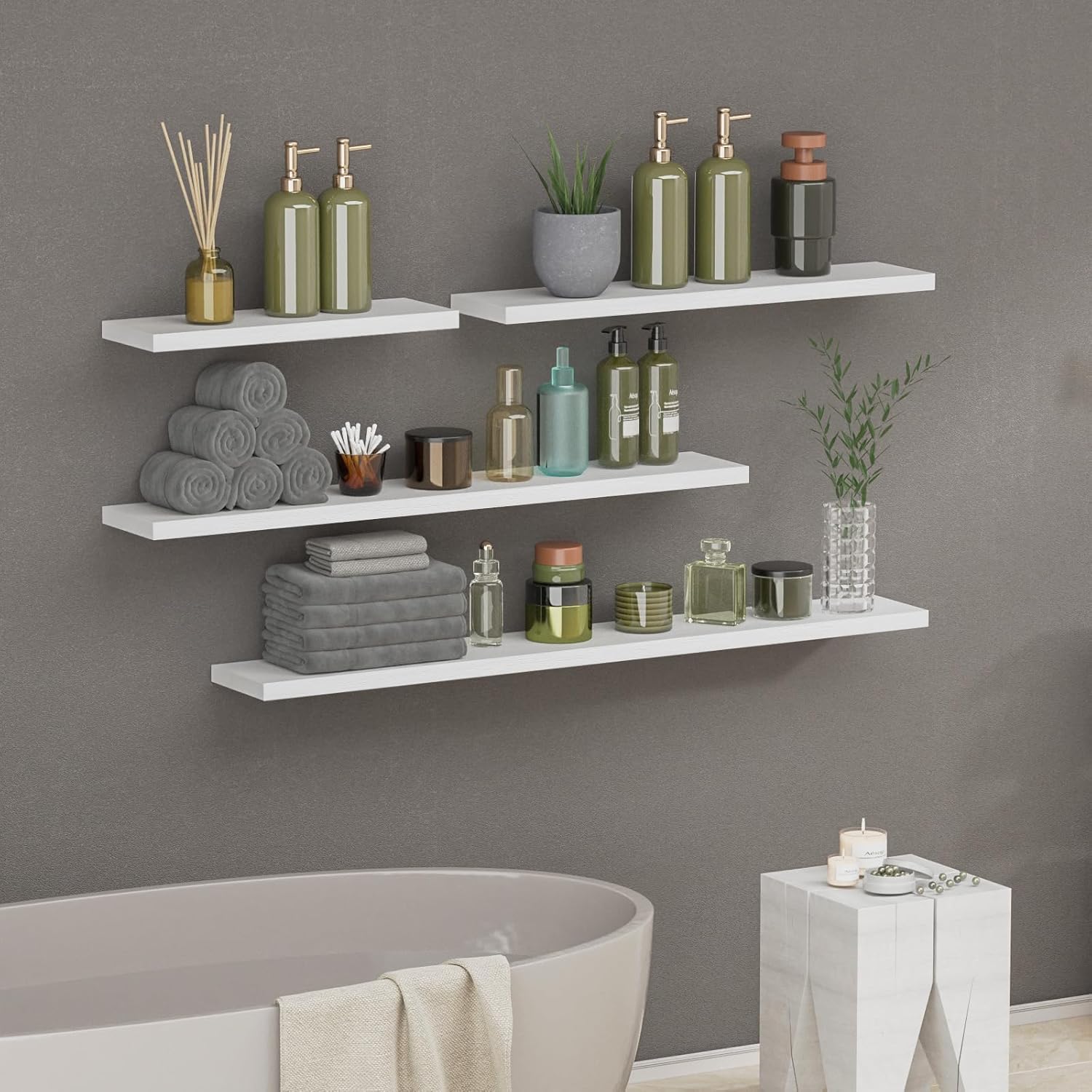 • Versatile Floating Shelves: These wall shelves are more than just storage,they are versatile decor solutions; Available in various colors and sizes, these shelves complement any decor style, whether for a bedroom, bathroom, kitchen, or living room