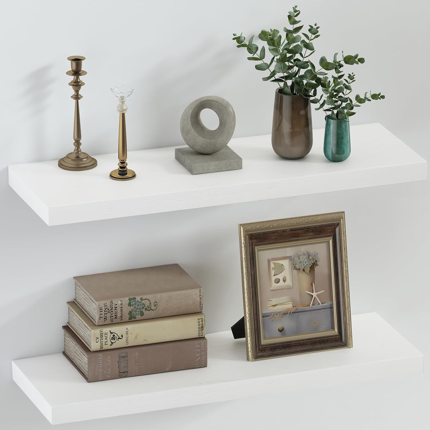 • Deep Floating Shelves: Crafted with extra-wide (8 inches) and thick (1.4 inches) wood, they are deeper and sturdier than regular floating shelves; Perfect for displaying books, plants, and decorative items, they make your space more organized