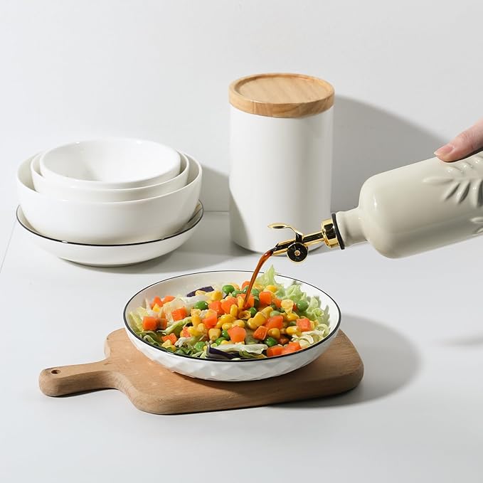 • Versatile for Kitchen & Practical- Ideal for storing and dispensing olive oil, vinegar, syrups, and more. Its 18 oz (530 ml) size is perfect for home kitchens, restaurants, cafes, or as a stylish gift. Durable, high-temperature-fired ceramic ensures lasting use.