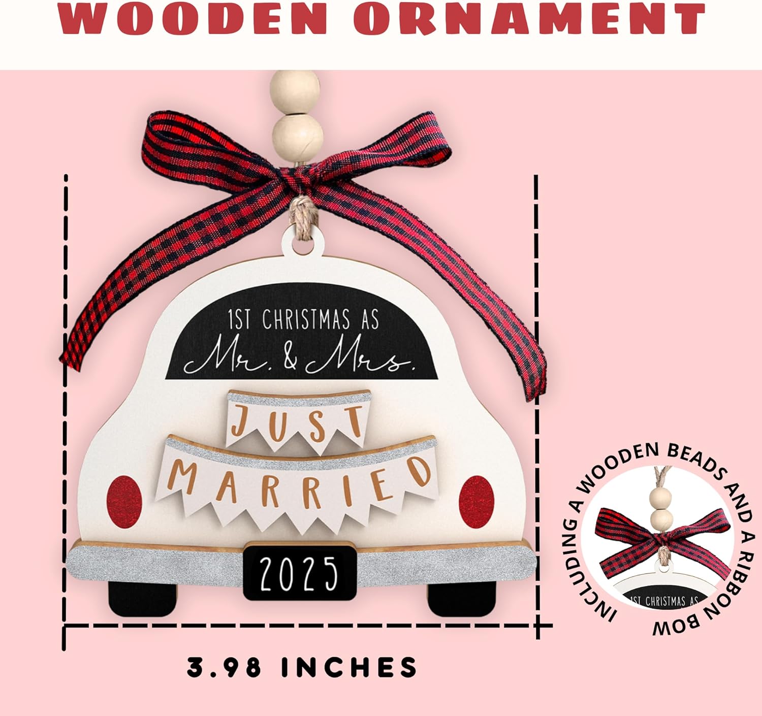 Wedding Gifts - Mr and Mrs Gifts - Wedding Gift for Couples 2025, Bride, Future Mr and Mrs - First Christmas Married Ornament 2025 - Bridal Shower Gift for Married Newlywed - Wood Ornament