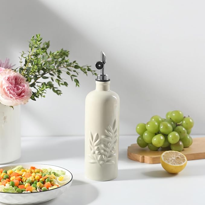 • Versatile for Kitchen & Practical- Ideal for storing and dispensing olive oil, vinegar, syrups, and more. Its 18 oz (530 ml) size is perfect for home kitchens, restaurants, cafes, or as a stylish gift. Durable, high-temperature-fired ceramic ensures lasting use.