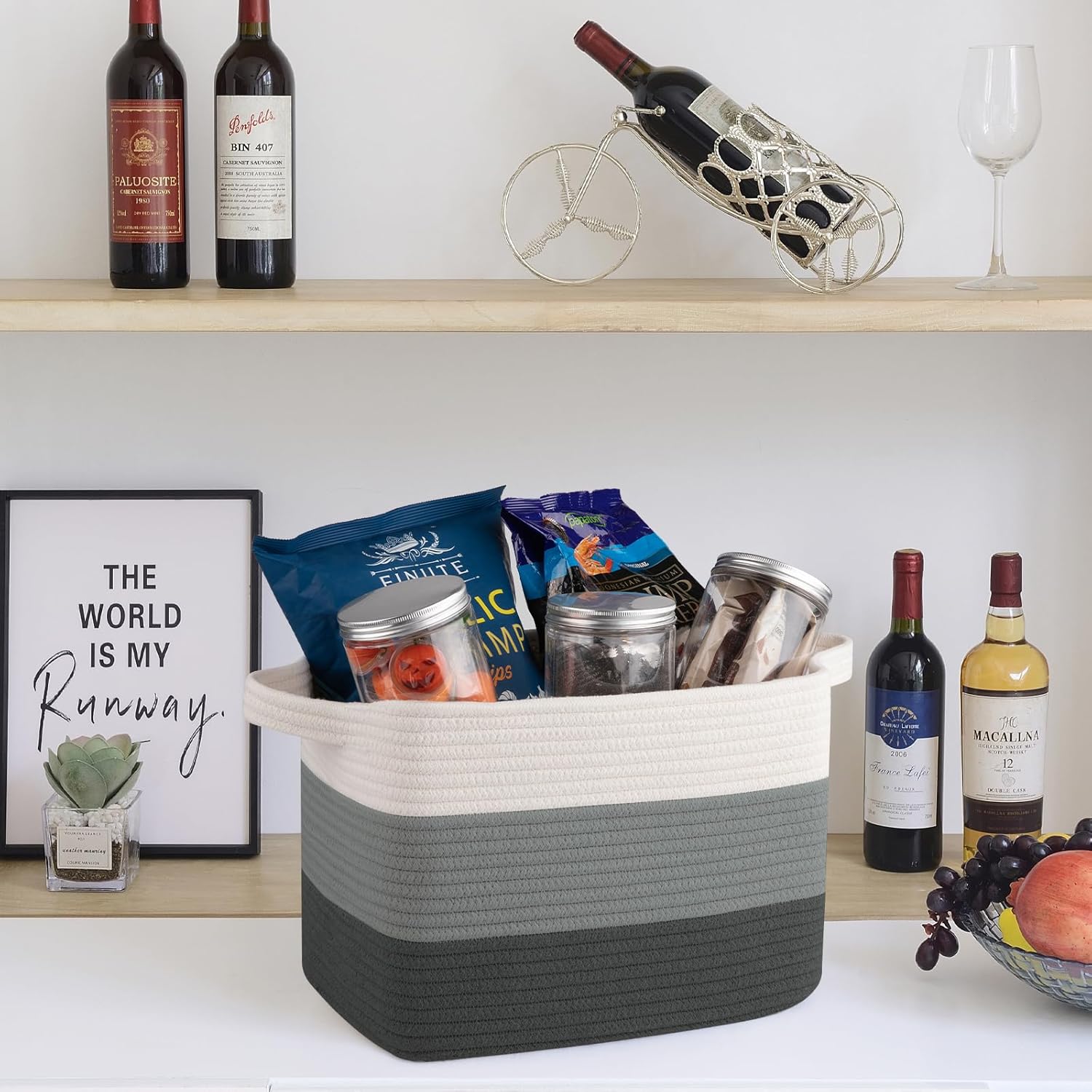 • High Quality Cotton Rope Woven: Woven cotton thread is very soft and don't damage your floors and furniture. Seamless design, not easy to tear,More firm than rattan and plastic materials. Our storage basket has no harsh chemiacls added, and the cotton rope basket is safe for kids, elders and pets. Firm enough and stylish enough to go anywhere in the home