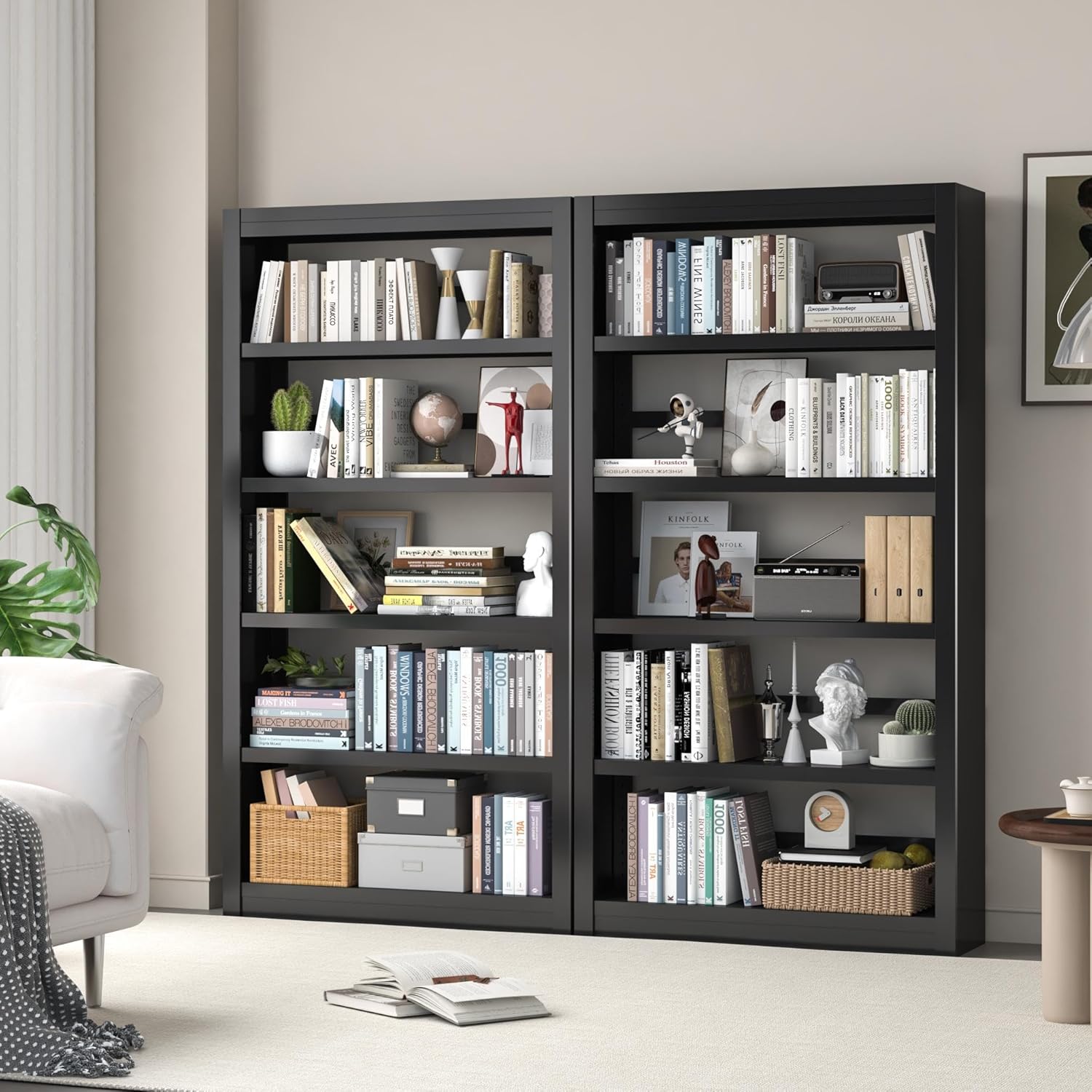 • ✅【Adjustable 5 Tier Bookshelf】 This black bookshelf design with easy-to-adjust storage shelves. Customize book shelves heights to fit tall books, decor, or storage bins. Perfect for maximizing vertical space in small rooms, offices, or living rooms. Holds up to 200lbs per shelf – 3x stronger than wooden bookshelves