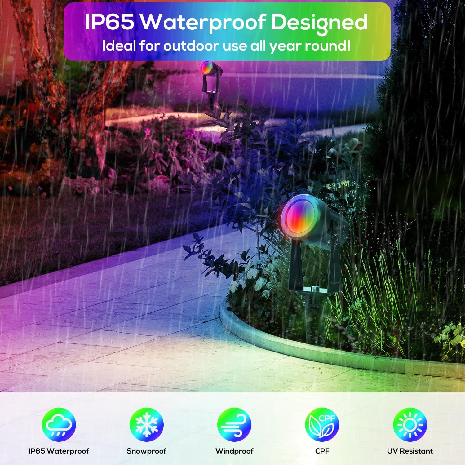 • 【Various Color Options & Timer Function】ZYAN RGB color-changing landscape spotlights with 8 fixed color modes and 1 automatic color change mode. Various Color Options perfect for Nightly Light Show and add holiday atmosphere like Halloween, Parties, Christmas, New Year, etc. Adopted Remote Control, which is convenient and easy for you to adjust light brightness, change light colors, switch lighting modes and set timers Anywhere and Anytime that save more Energy.