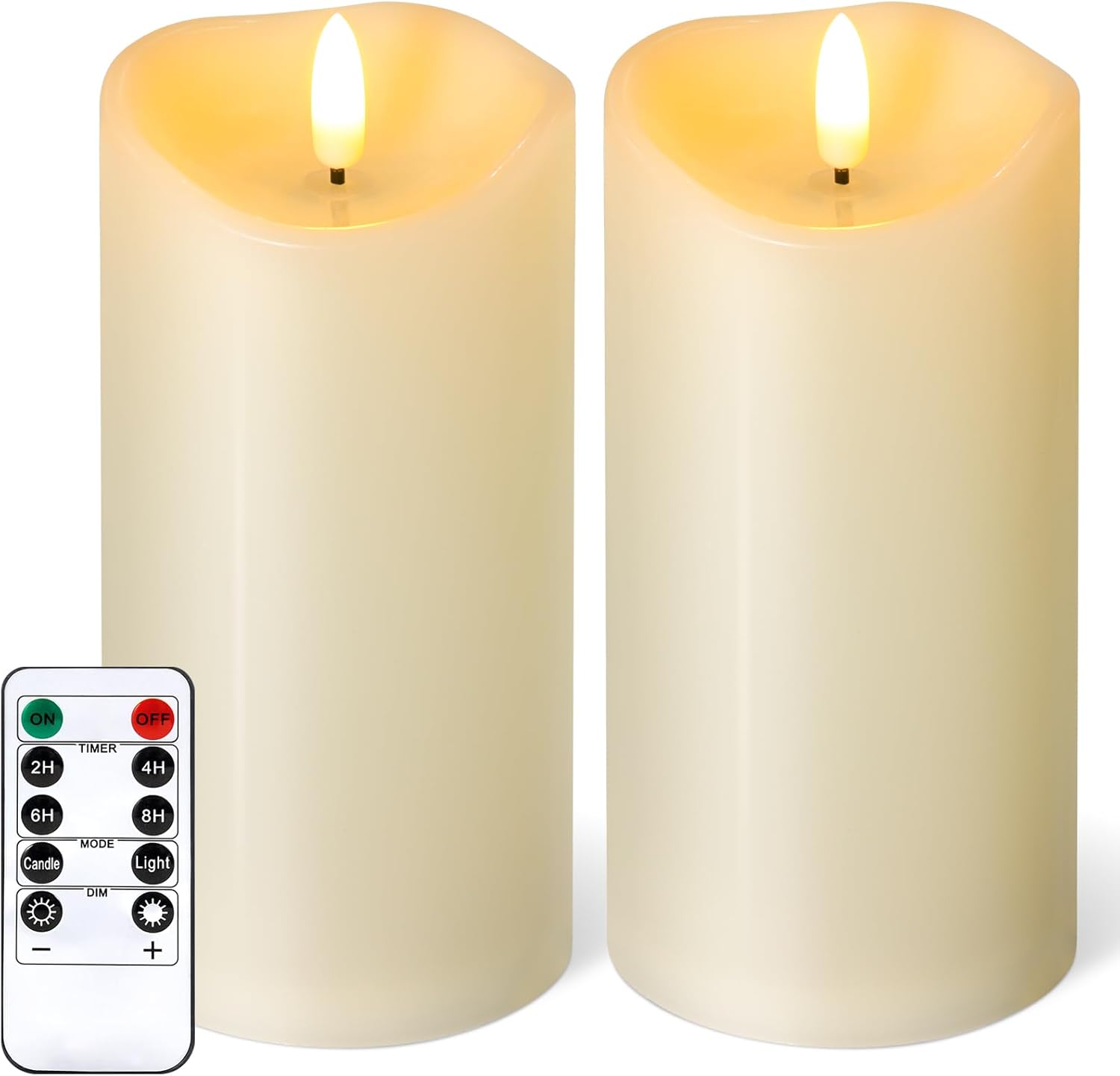 • 10 Key Remote Control with Timer - The remote controls are user-friendly and work from long distance, allowing you to easily operate the remote candles from your sofa or bed with the remote control within 18 ft. Easily switch ON/OFF, change light modes, adjust brightness, set the timers. The timer function allows you to set 2, 4, 6 and 8 hours, cycling every 24 hours