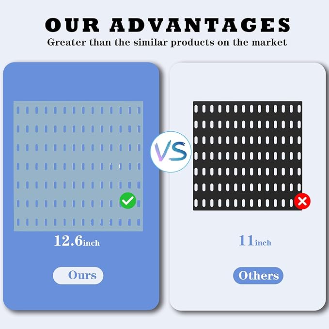 • Cost-Effective: This Pegboard Combination Kit is adjustable and removable. This new set is12.6"X12.6", bigger than the formal 11”X11”. The 20 accessories show more cost-effective than the formal 16 accessories