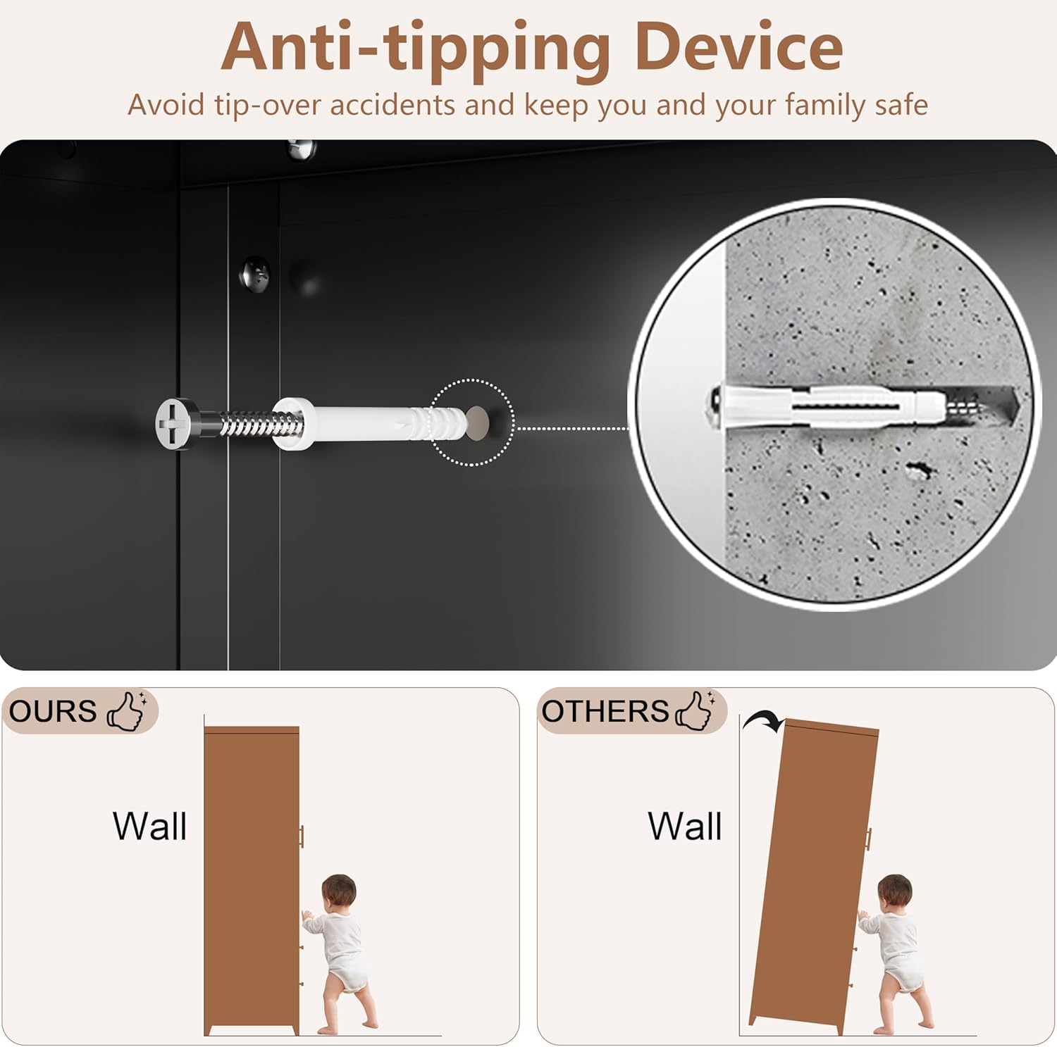 • [PRACTICAL DESIGN] Adjustable shelves allow you to customize storage space. Anti-tipping device will keep you and your family safe. The leveling foot keeps it standing smoothly