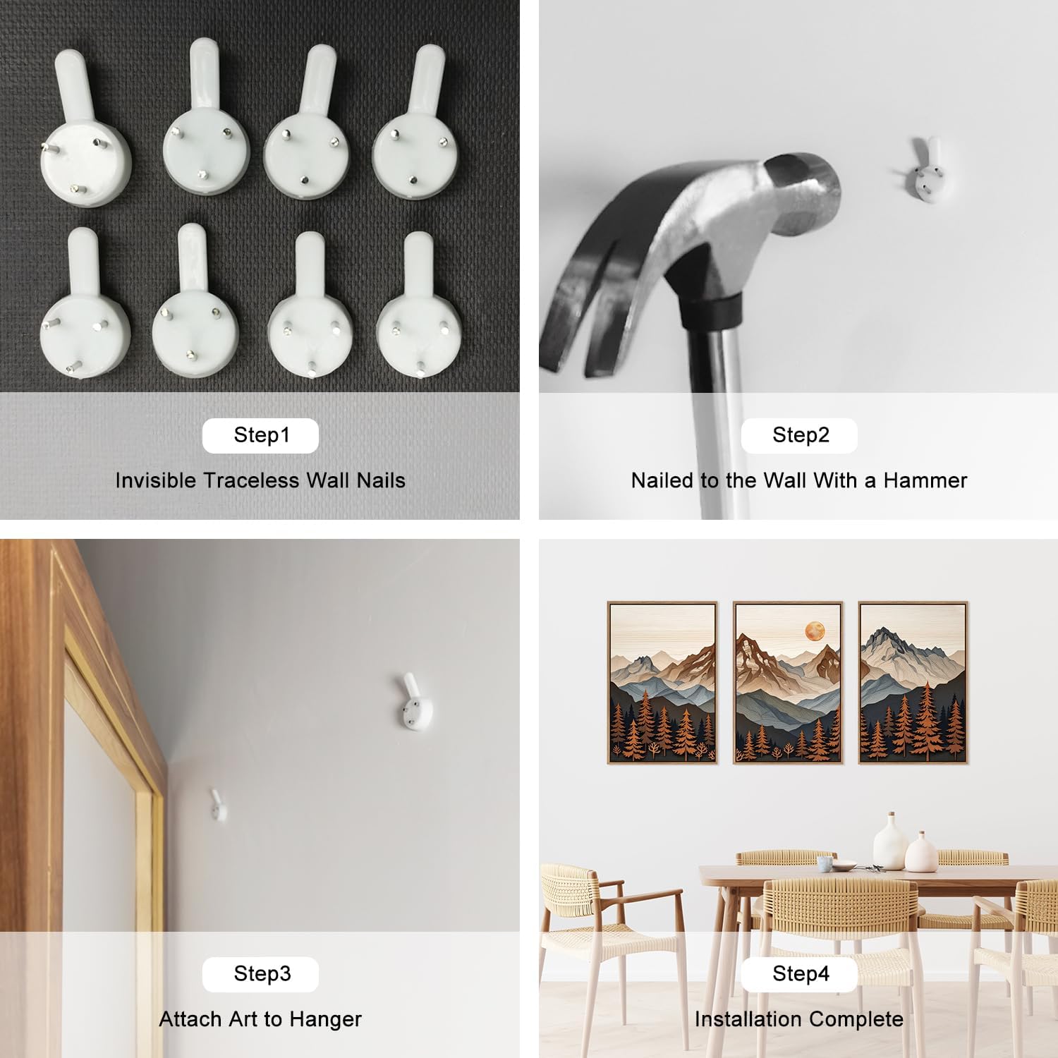 • Easy to Hang: Each of these three forest pine tree art prints pieces measures 16x24inches. It comes with all the necessary accessories so it's simple and easy to install. Simply choose where you want to decorate, make sure it's level and aligned the way you want it, and then nail it down with non-marking nails.
