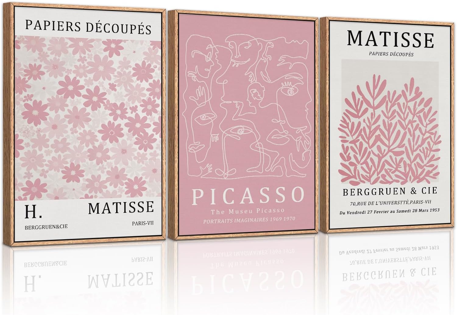 HLNIUC Matisse Pink Wall Art,Neutral Pink Flower Framed Canvas Wall Decor Set of 3(16”x24’) Modern Aesthetic Pictures Wall Painting,Abstract Flower Market Art Print for Living Room,Bedroom
