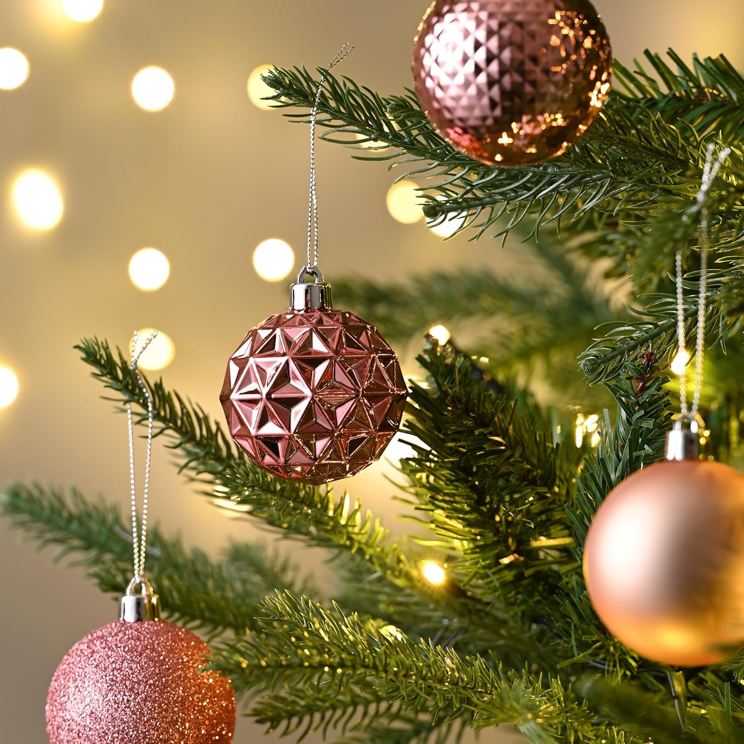 • 【Package and Size】This ornament ball set include 50pcs Christmas ornaments measuring 2 inches in diameter, featuring seamless connections for a polished look