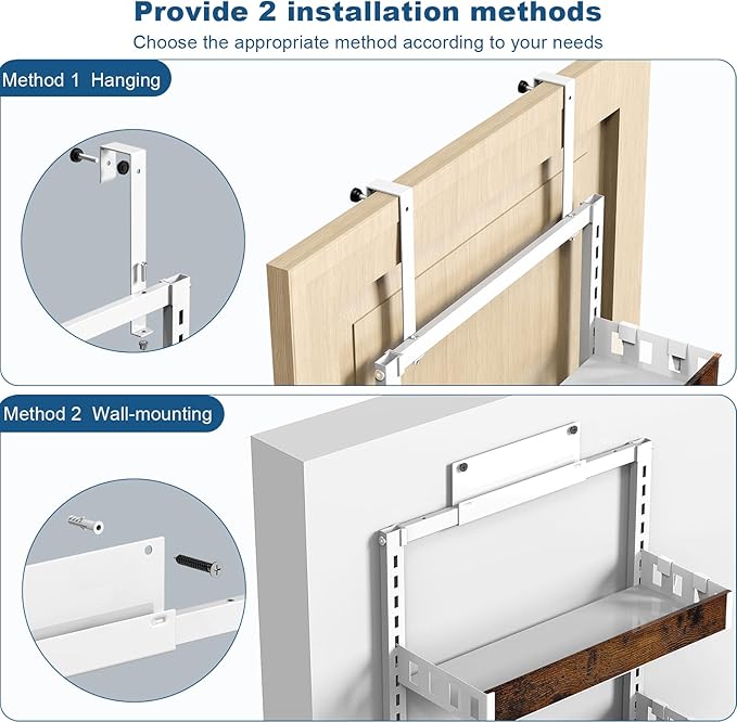 • 【Large Capacity and Stable Structure】8-layer large capacity can be reasonable partition to place your things.Strong load-bearing,long-lasting and durable.Over The Door Pantry Organizer is made of high quality metal materials,with enhanced load capacity,robustness,rust resistance and stability