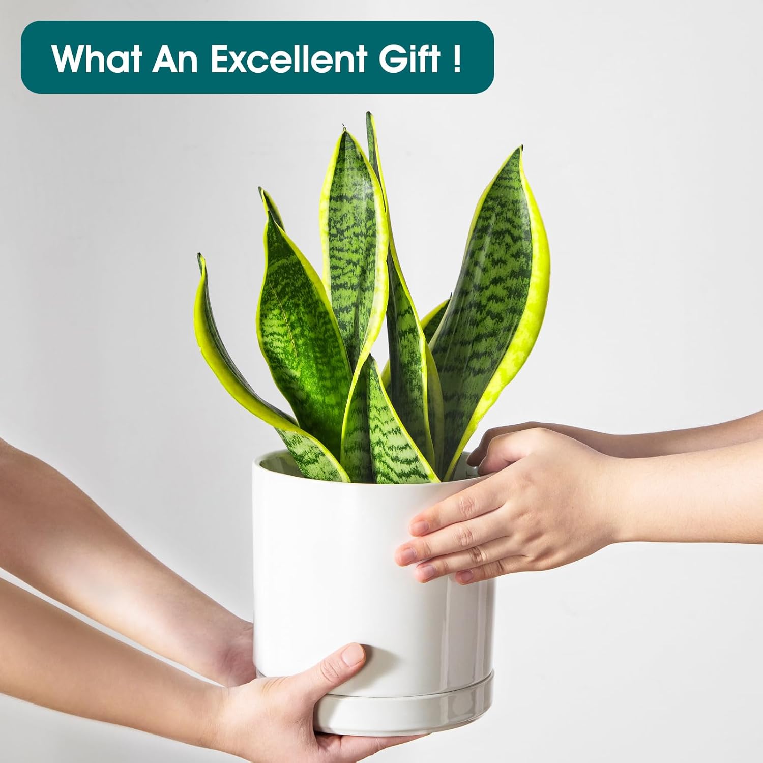 • 【Modern Ceramic Planters】 Designed with contemporary aesthetics, these plant pots feature elegant finishes in multiple colors to complement any decor—Great for decorating windowsill, shelf, tabletop, bedroom, garden, and outdoor patio. while the roomy interior accommodates medium-sized plants like flowers, pothos, monstera, africa violet, snake plant, money tree and small tree sapling.