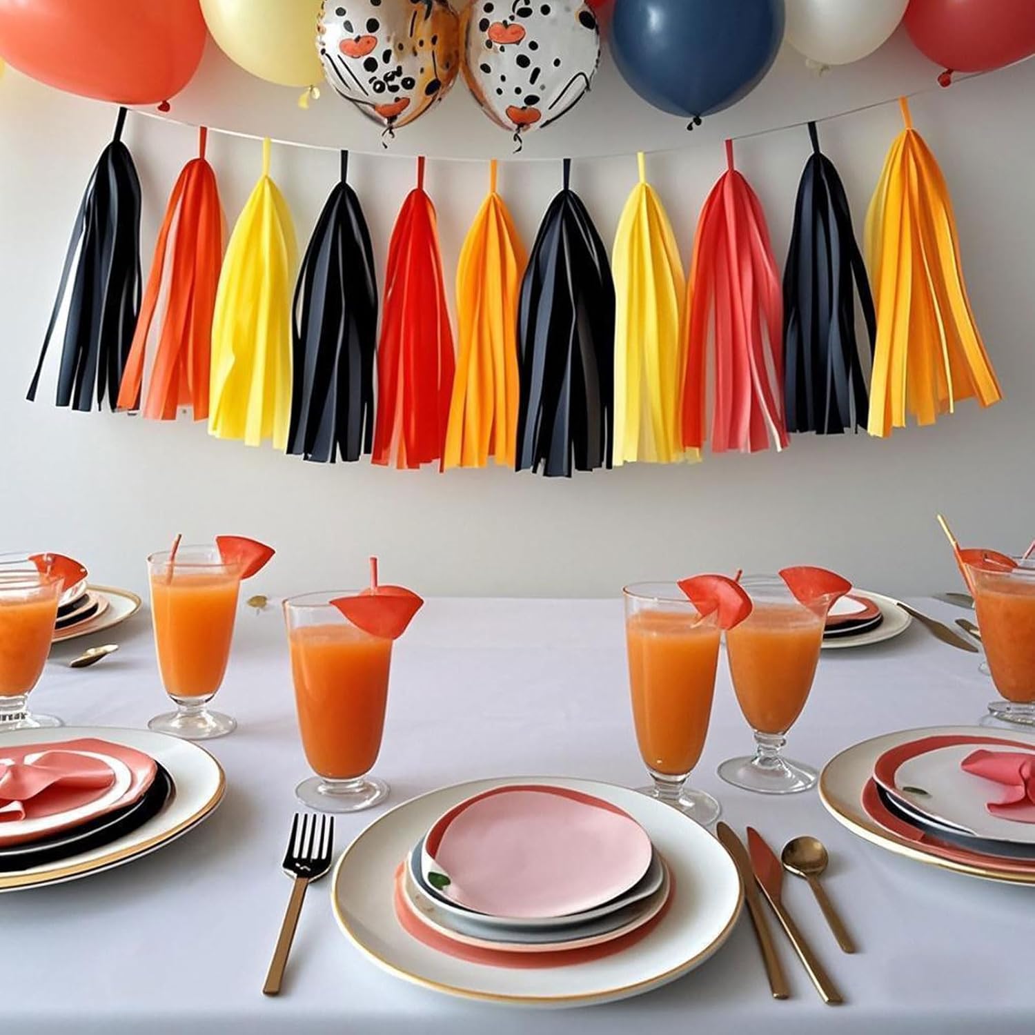 • CONTENTS: Complete set of 20 tissue paper tassels in fire truck theme colors - black, orange, red, and yellow for striking party decorations