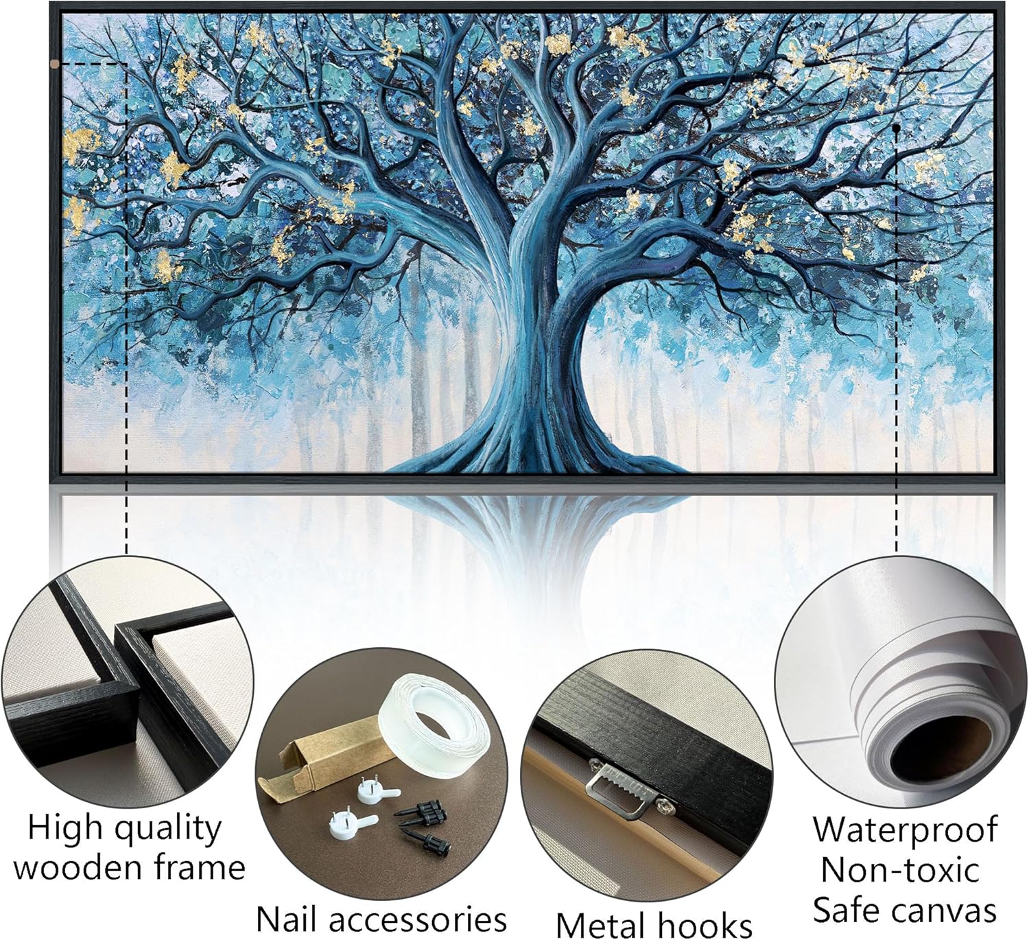 • Tree of Life Wall Art: Printed on high-definition canvas with eco-friendly inks and finished with hand-applied gold foil, this artwork is fade-resistant, waterproof, and UV-resistant.