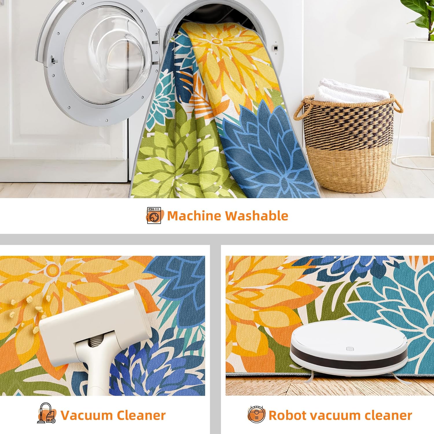• Floral Pattern Design: Brighten up your outdoor space with our stunning floral pattern washable rug, perfect for patios, decks, or gardens, adding a touch of elegance and charm to any setting.