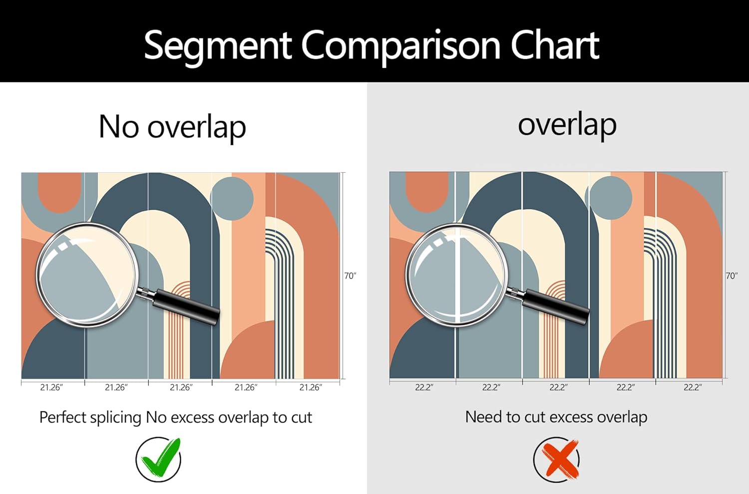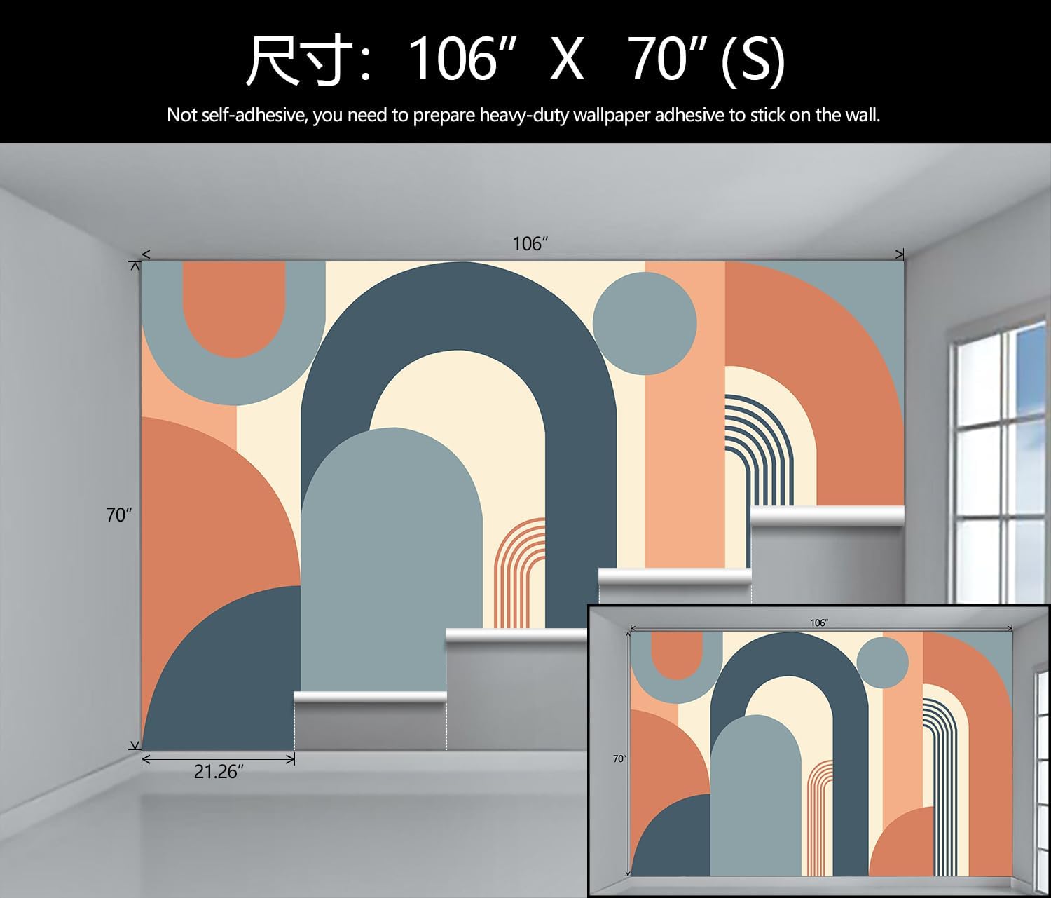 • Mural Size: The total size of this mural wallpaper is 106" x 70" / 270CM x 178CM (W x H), cut into 5 pieces, each measuring 21.26" x 70", for easy installation.