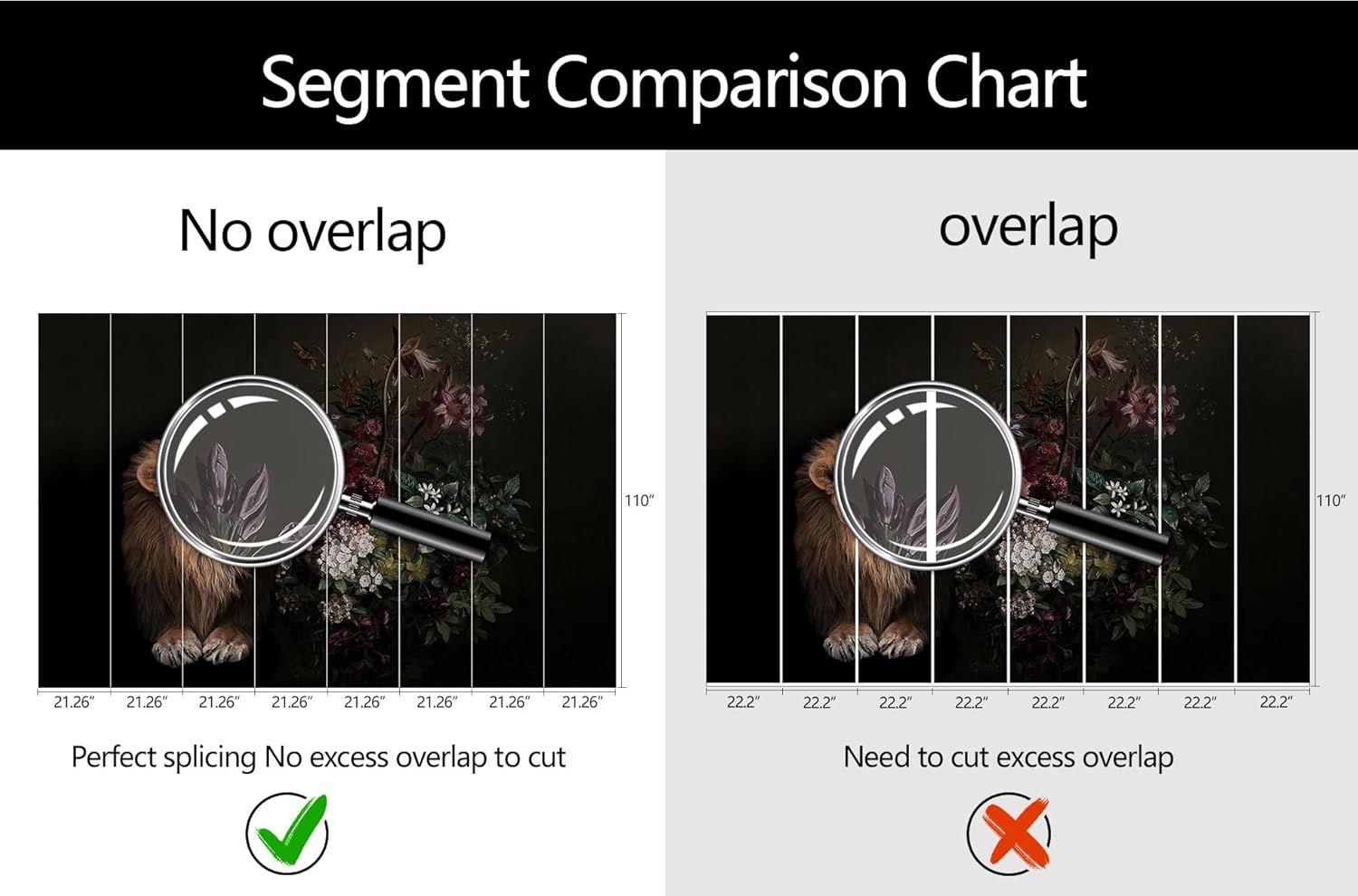 • Mural Size: The total size of this mural wallpaper is 170" x 110" / 432CM x 280CM (W x H), cut into 8 pieces, each measuring 21.26" x 110", for easy installation.