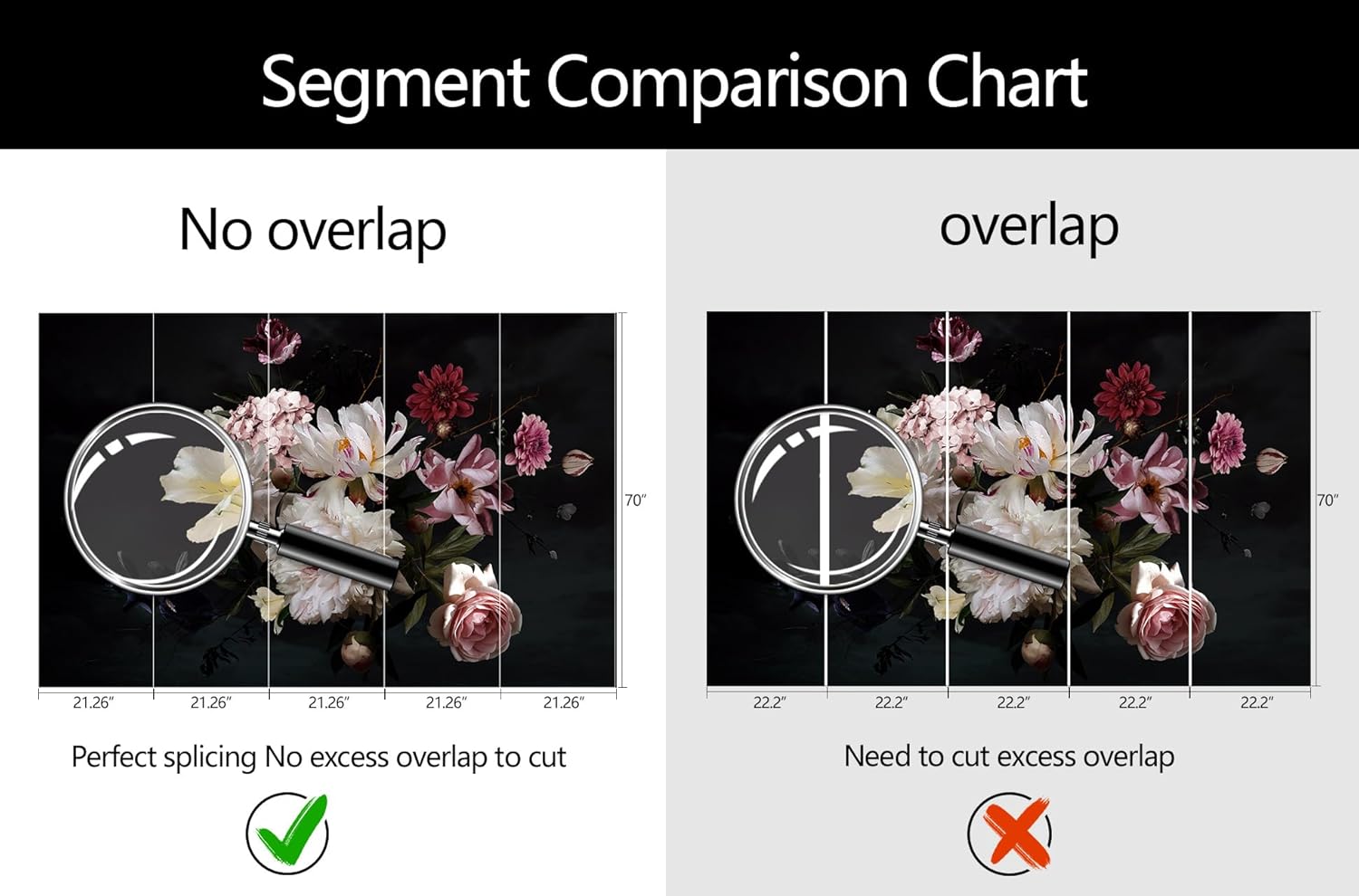 • Mural Size: The total size of this mural wallpaper is 106" x 70" / 270CM x 178CM (W x H), cut into 5 pieces, each measuring 21.26" x 70", for easy installation.
