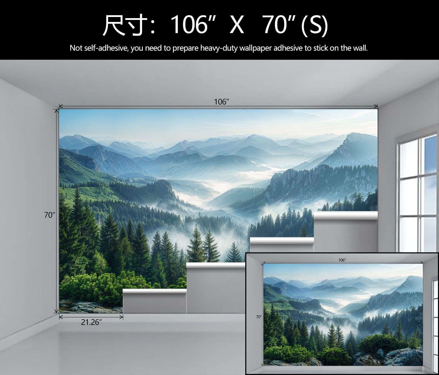 • Mural Size: The total size of this mural wallpaper is 106" x 70" / 270CM x 178CM (W x H), cut into 5 pieces, each measuring 21.26" x 70", for easy installation.