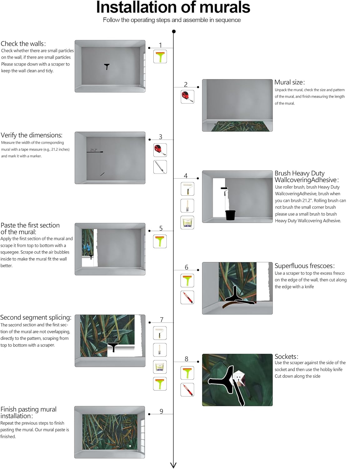 • Warm tip: This mural is not peel and stick, you need to buy your own glue, it is recommended to use Heavy Duty Wallcovering Adhesive.