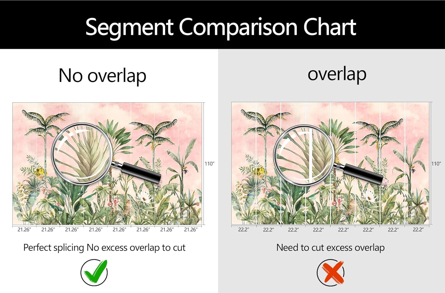 • Mural Size: The total size of this mural wallpaper is 149" x 96" / 378CM x 244CM (W x H), cut into 7 pieces, each measuring 21.26" x 96", for easy installation.