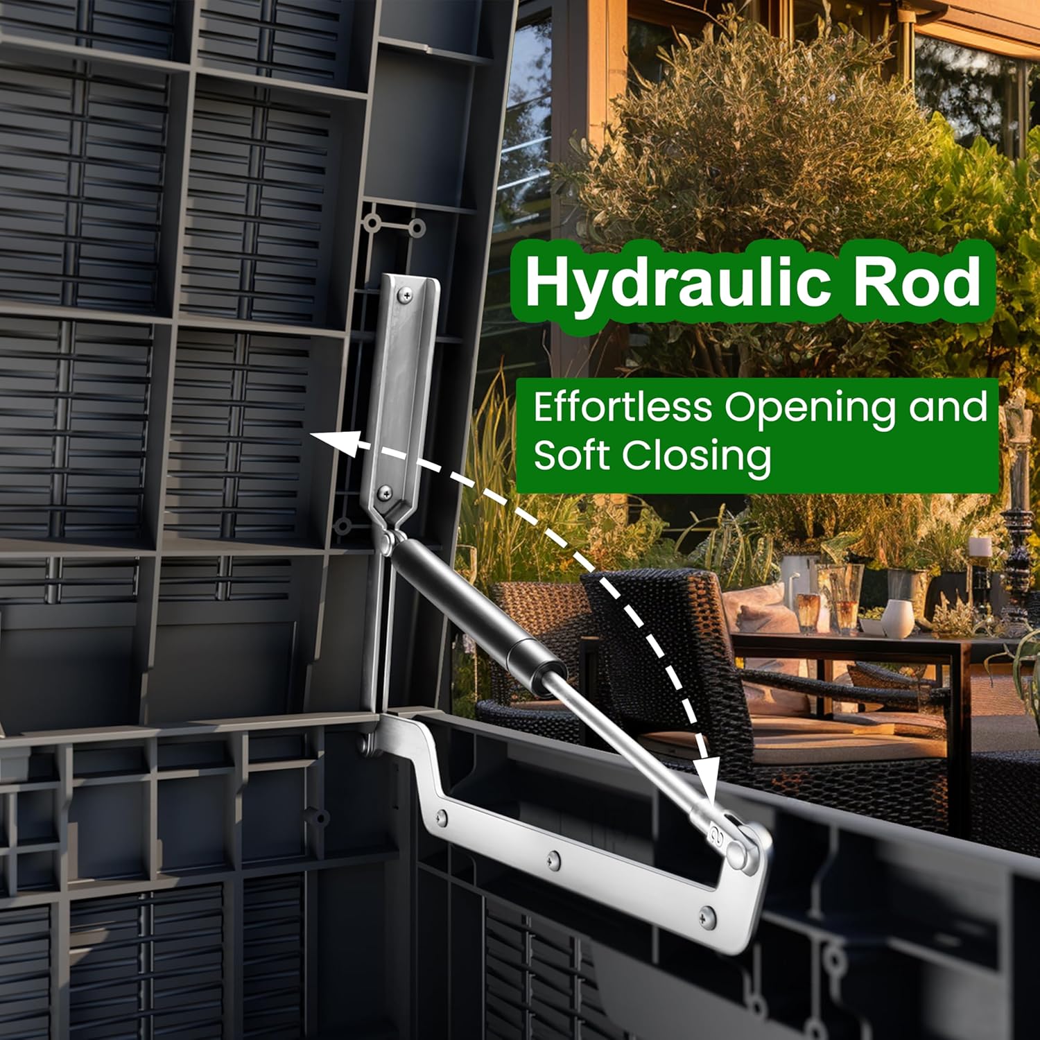 • Sturdy Plastic Construction with UV Resistance:Made from durable resin, this deck box is UV-resistant and built to handle the harshest outdoor conditions, providing years of use without fading or cracking.