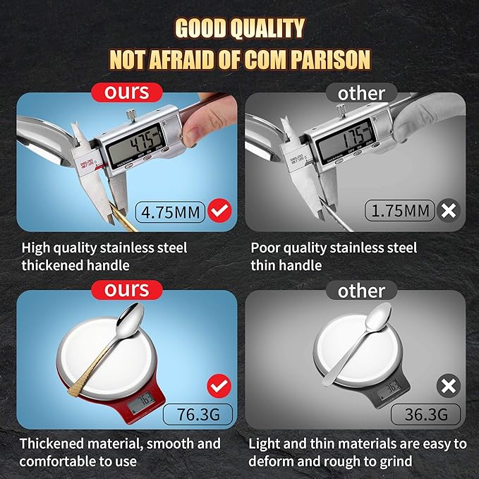 • Premium Stainless Steel Design : Our cutlery set uses high-quality stainless steel, which is not only strong, durable but also easy to clean. The polished surface makes your dining experience more enjoyable