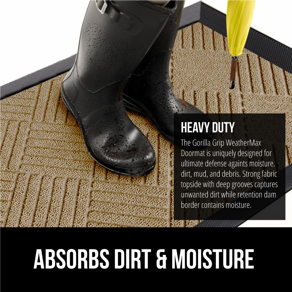 • THE ORIGINAL WEATHERMAX ALL SEASON DOORMAT: Gorilla Grip's Original WeatherMax doormat is built tough with a heavy duty, yet soft and flexible construction; deep grooves, beveled rubber border and retention dam help capture dirt, debris and moisture