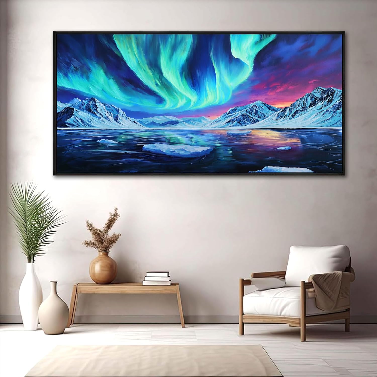 yiijeah Large Canvas Wall Art - Living Room Wall Decor Blue Aurora Scenery Paintings Framed Wall Pictures Artowrk for Walls Bedroom Nature Waterfall Landscape for Office Home Decor