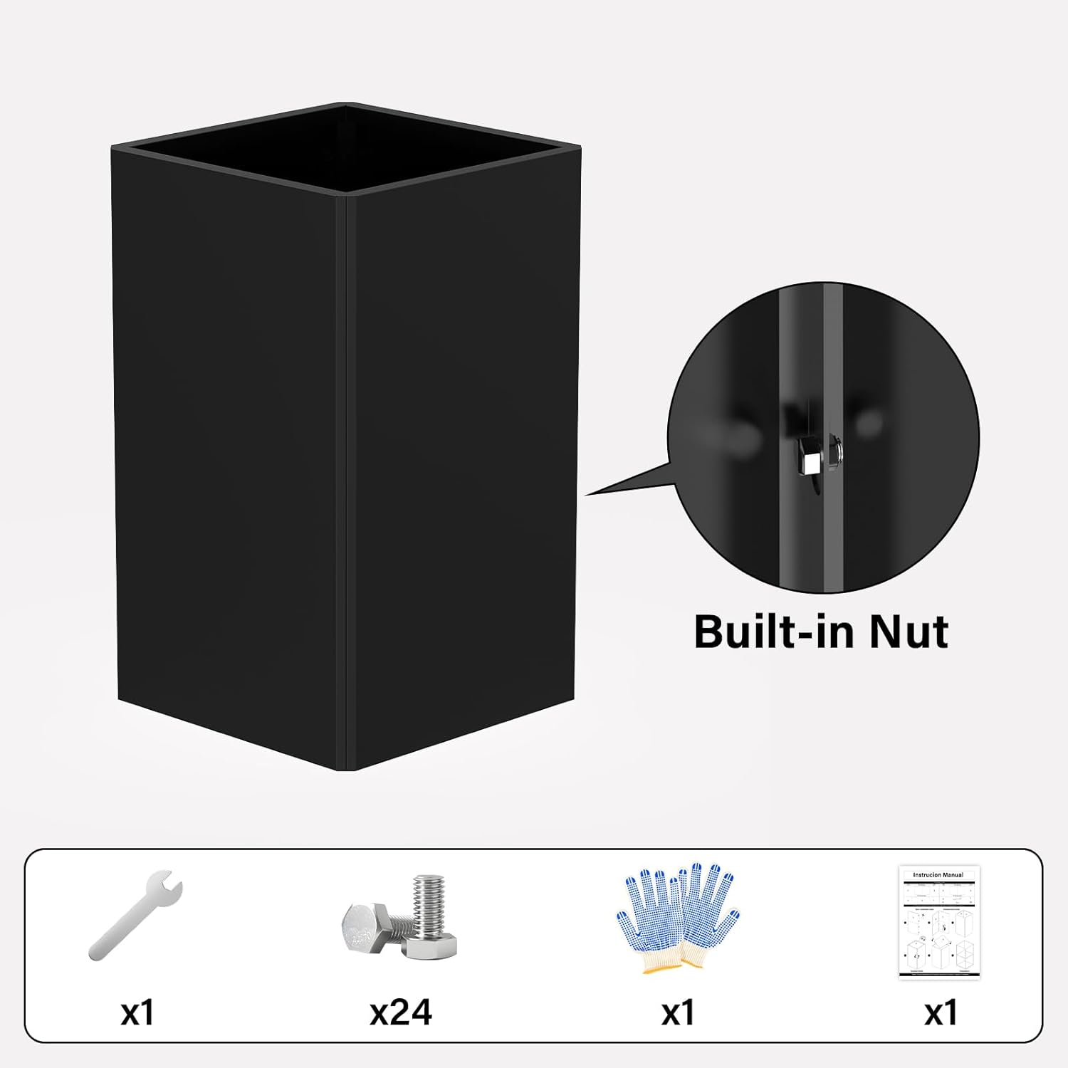 • Weather Resistant Planter:Tall flower pots is made of thickened galvanized steel, with 3 layers of black outdoor special baking paint to prevent rust and fade. Heary duty metal construction guarantee the planters stability and sturdy, and can withstand any weather test