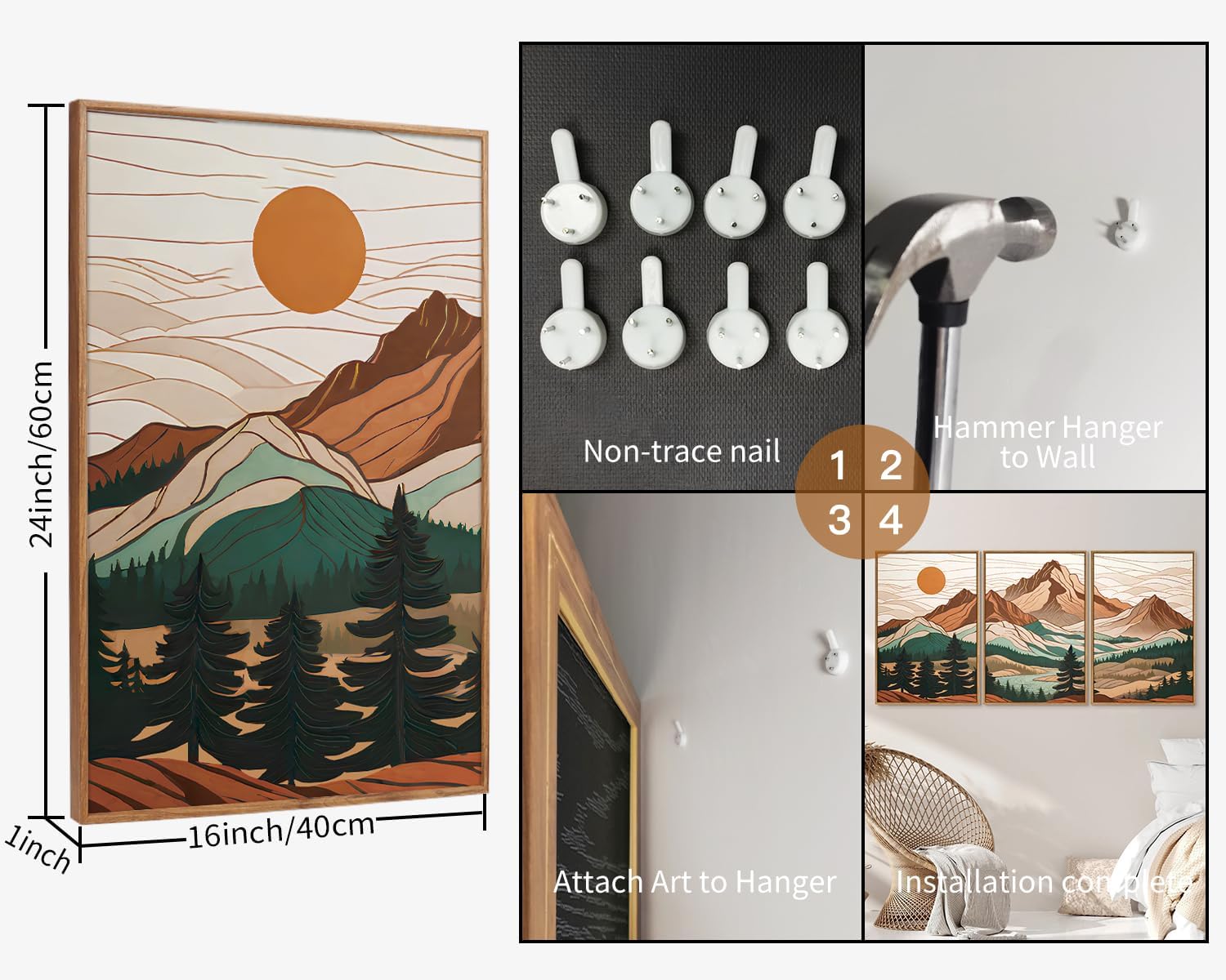 • Perfect Size for Any Space: Measuring 16"x24" each, this set of three can be displayed together as a striking gallery wall or separately in various rooms, such as your living room, bedroom, or office, enhancing any environment with its natural beauty.