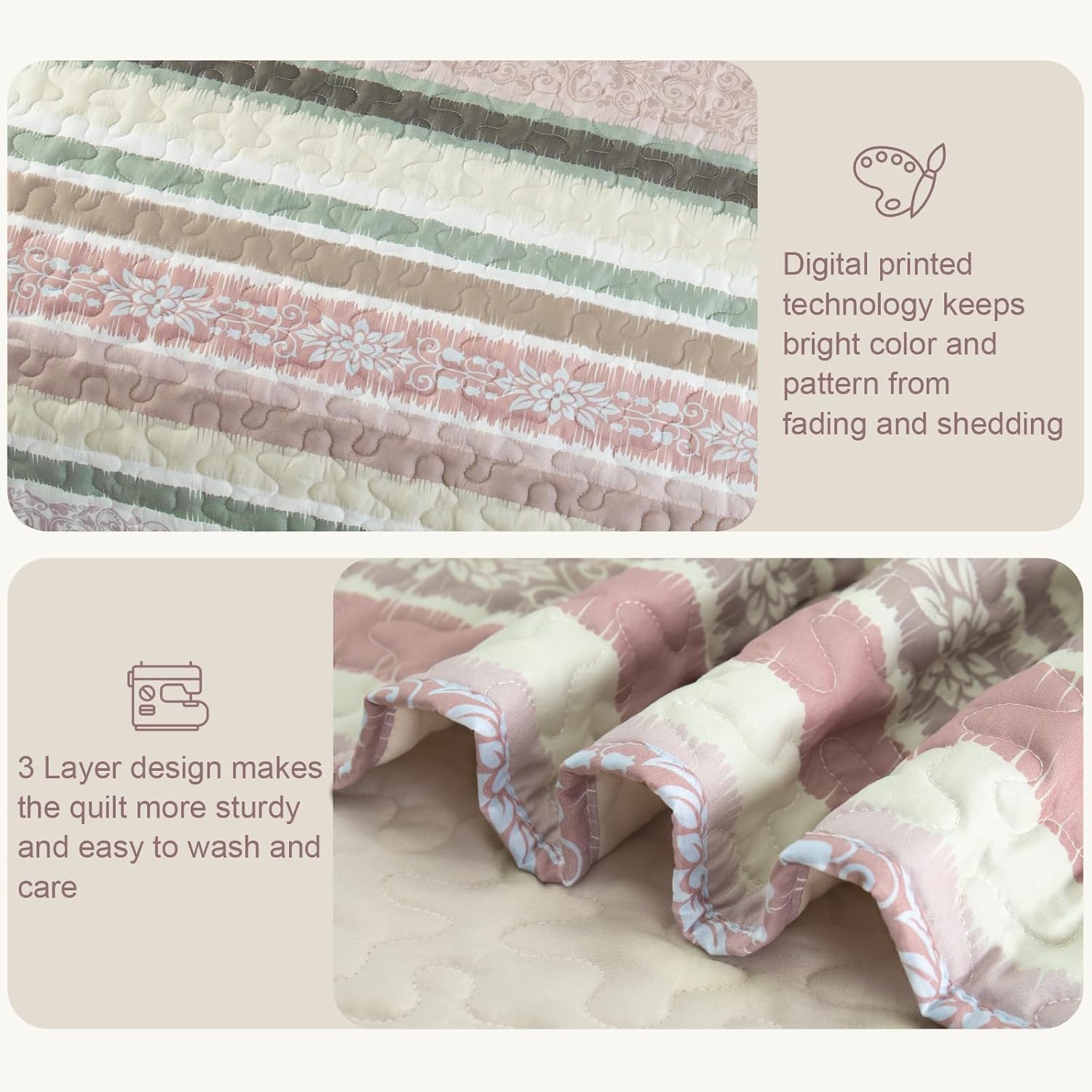 • Premium Material: This ultra comfortable quilt bedding set is soft to the touch and light as a feather. 3-layer design and tight stitching make this coverlet a caring and long-time companion to provide softness and defend against cold