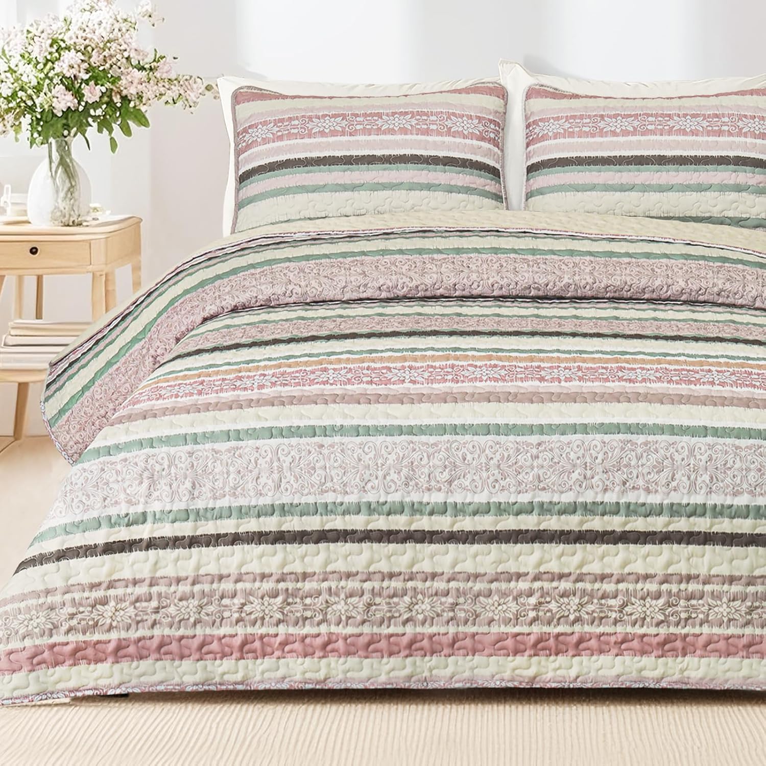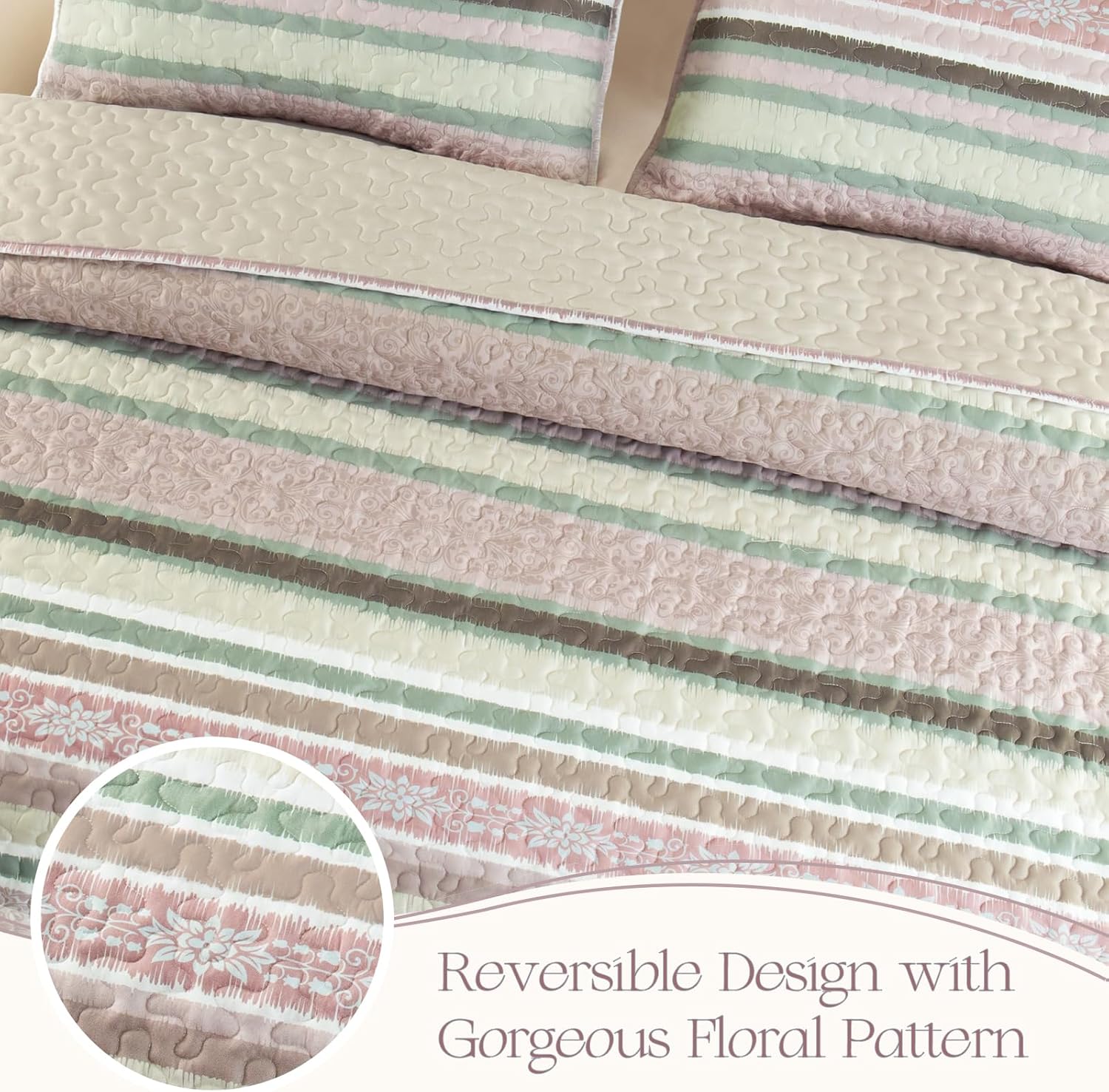 • Design: Pastel striped patterns are carefully printed on this quilt bedding set. Thanks to the high-tech digital print technology, this bed cover could keep its vibrant colors and patterns from fading after washing