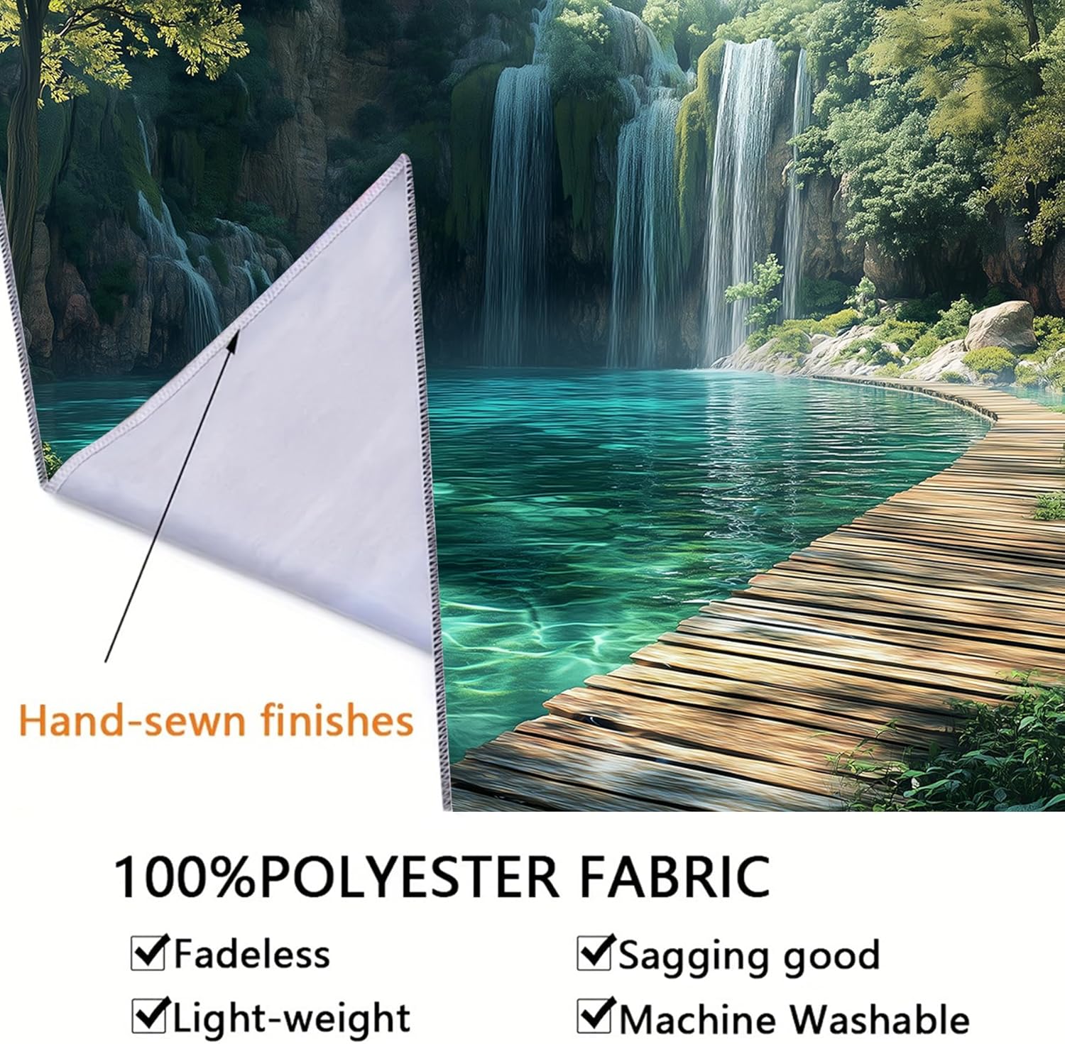 BSFHH Nature Tapestry Forest Tree Sea Cave Wall Hanging, Stream Through Rainforest Landscape Wall Art Tapestry for Bedroom Living room (Waterfall, 79"×59", Unframed)