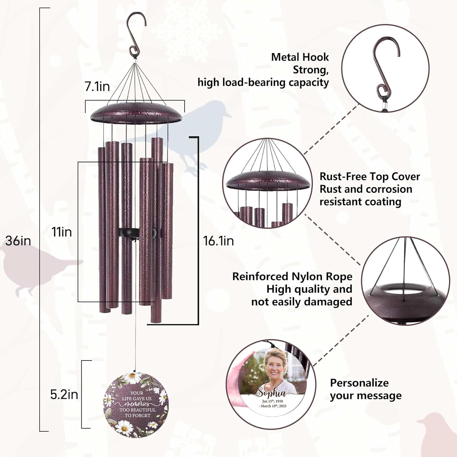 • A BETTER CHOICE THAN FLOWERS: Personalized memorial wind chimes, customized with his/her name and date to keep love in our hearts forever. Our wind chimes are tuned by wind chime experts to crash out beautiful music, a better tribute gift than flowers.