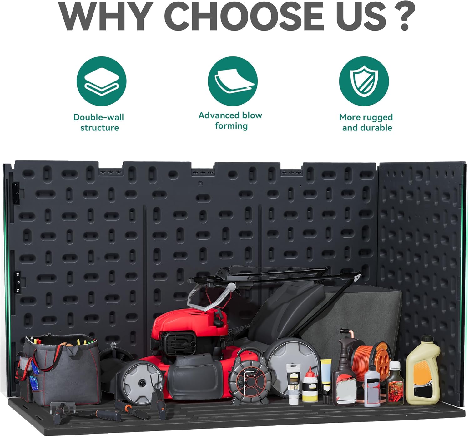 • Easy Setup: Approximately 30 minutes are needed to assemble the lockable storage box; Ensure all components are properly secured or tightened to structural integrity.NOTE: This deck box features a stylish two-tone color design. The Grayish-Black back and right panels may appear Bluish-Gray under sunlight, while the other panels are Black