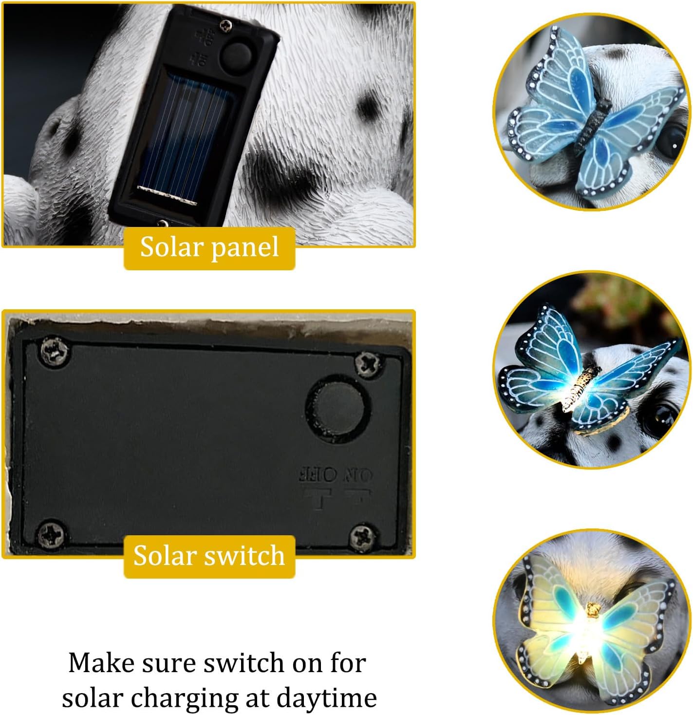 • ▶ Durable and Waterproof - This outdoor solar dog garden statue decor can withstand all types of weather conditions including heavy rain and snow. Dog figurines made of high-grade resin, you don't need to worry about color-fading or water leaking.