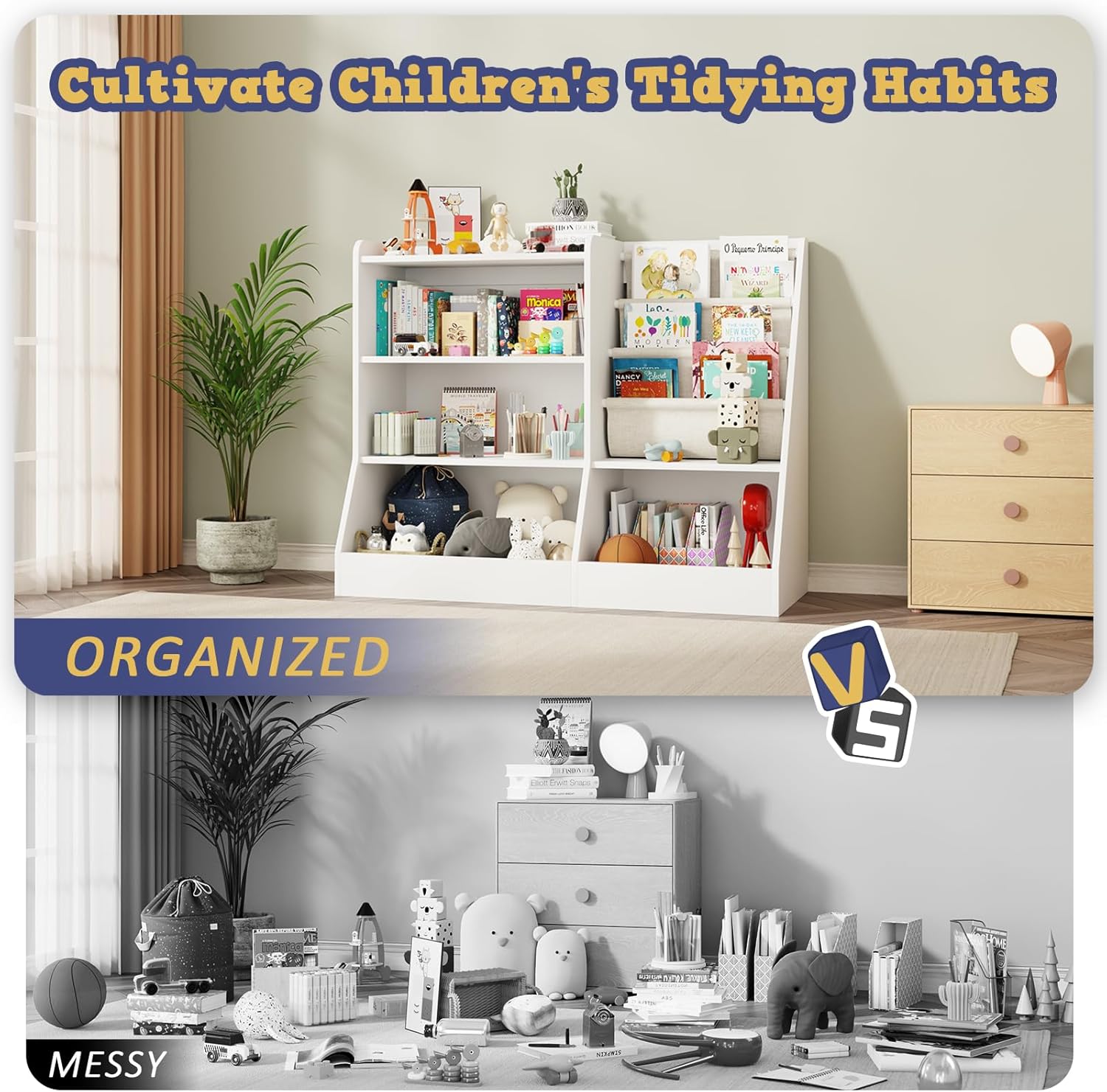 • Kid-Friendly Design ---- This Nursery Bookshelf can not only provide children with exclusive reading space, stimulate children's interest in reading and cultivate their reading habits. In addition, the simple and clear partition design of the baby bookshelf can better guide the child to learn to organize and storage, improve the children's ability to organize.