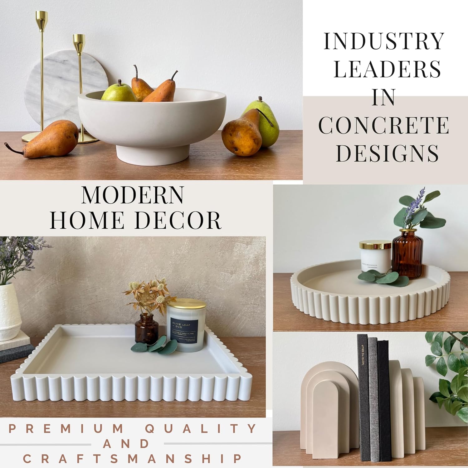 • PREMIUM QUALITY - Our tray is made of 100% solid concrete and every product is a unique work of art. Elevate your home with this concrete coffee tray for a countertop. Our fluted rectangle tray is perfect to use as a candle tray.