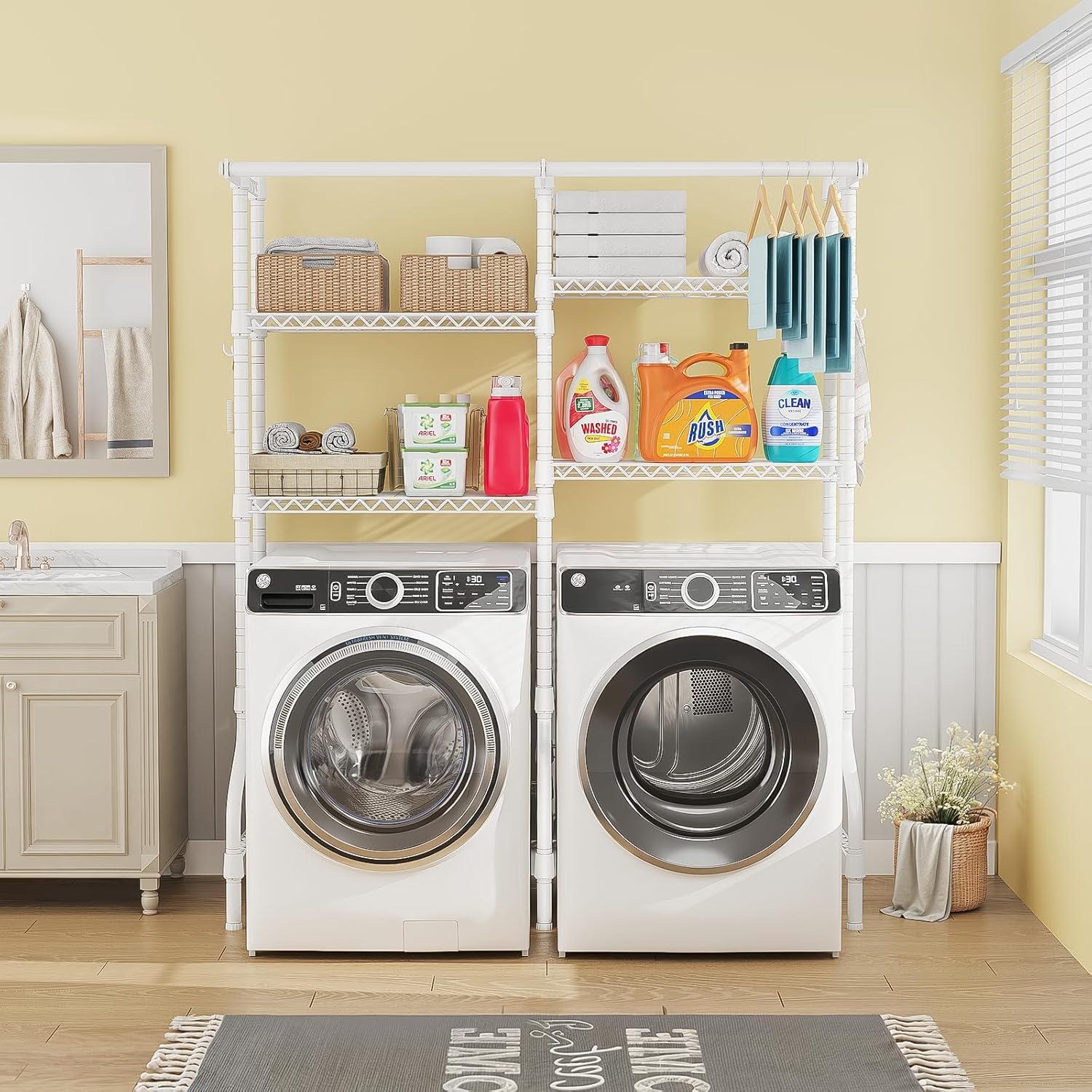 • [Long-lasting and Durable]: The over-washer and dryer storage rack features anti-rust powder coating for humidity-prone laundry rooms or garages
