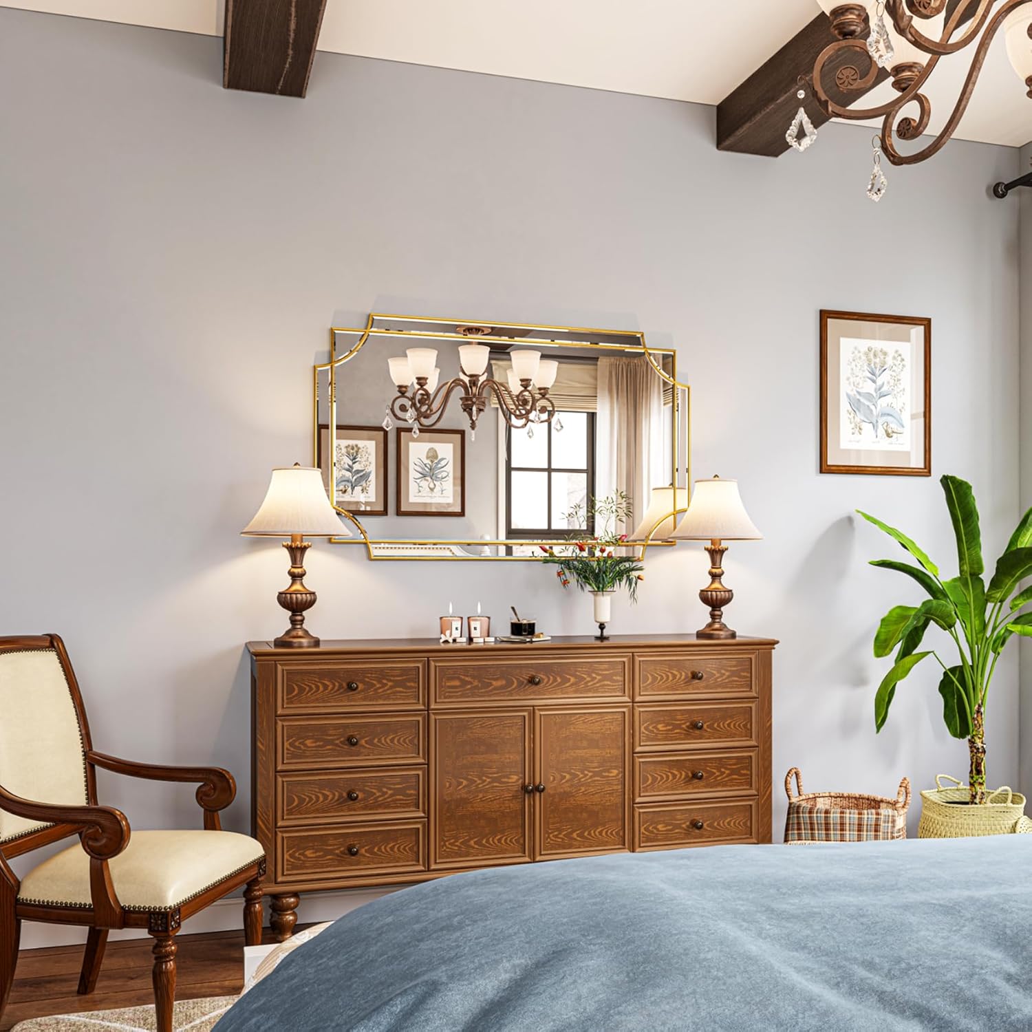 • GOLD FOIL FINISH. The mirror has a hand-applied gold foil finish. Its inherently textured detailing provides the mirror with unique character and charm. Whether you're using it as a wall art, vanity mirror or bathroom mirror, the large surface area allows it to brighten and expand any space it occupies. This mirror is also a perfect choice for your farmhouse makeover, fireplace mantle or bedroom furniture upgrade.