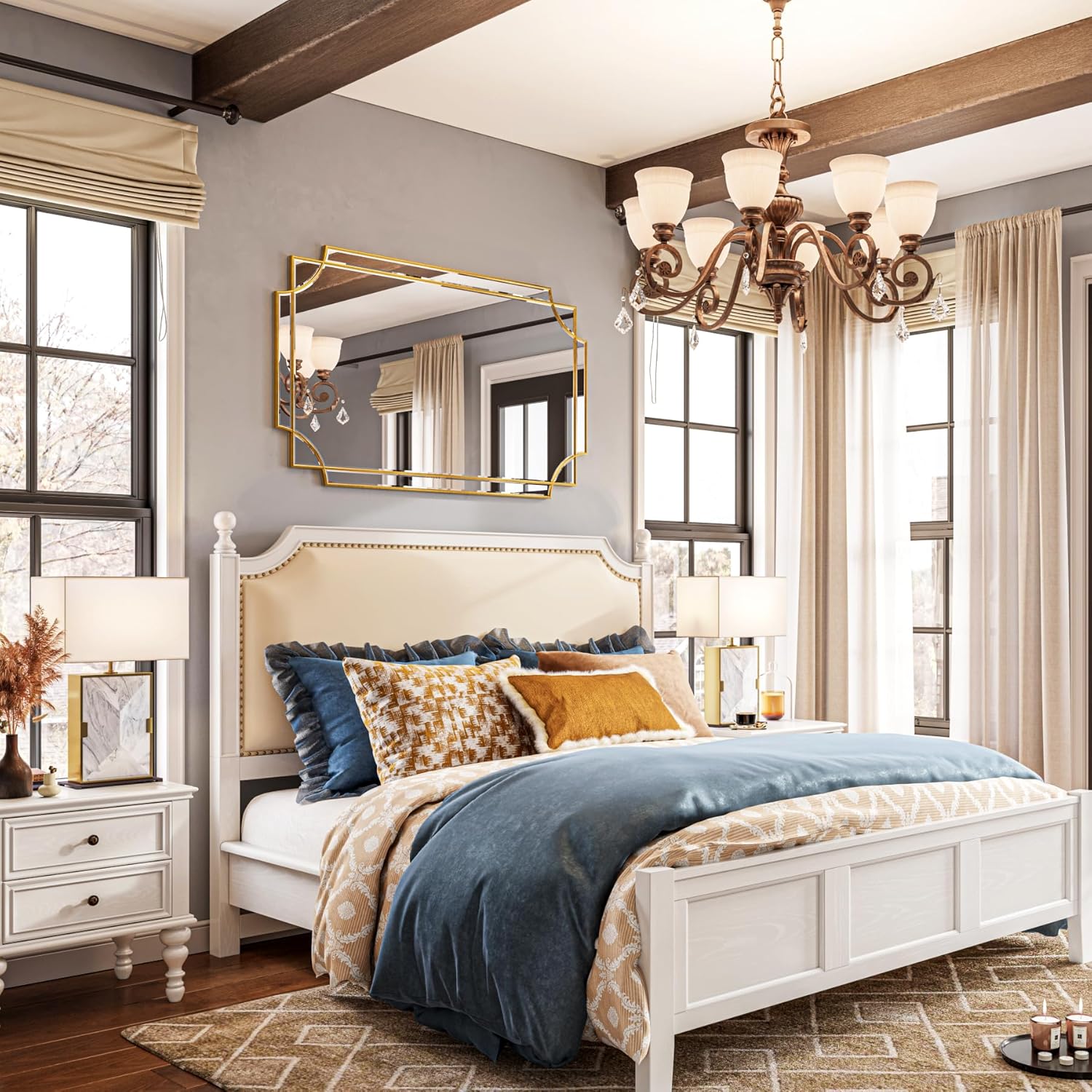 • ATTRACTIVE DESIGN. If your want some intricacies/interest to the pattern - not just a simple round or rectangle, this mirror will definitely be your perfect choice. Its sophisticated cutout corner accents along the inner and outer edges of the frame complete the look with added decorative detail. It will be a beautiful addition to any wall and an essential element in your home decor.