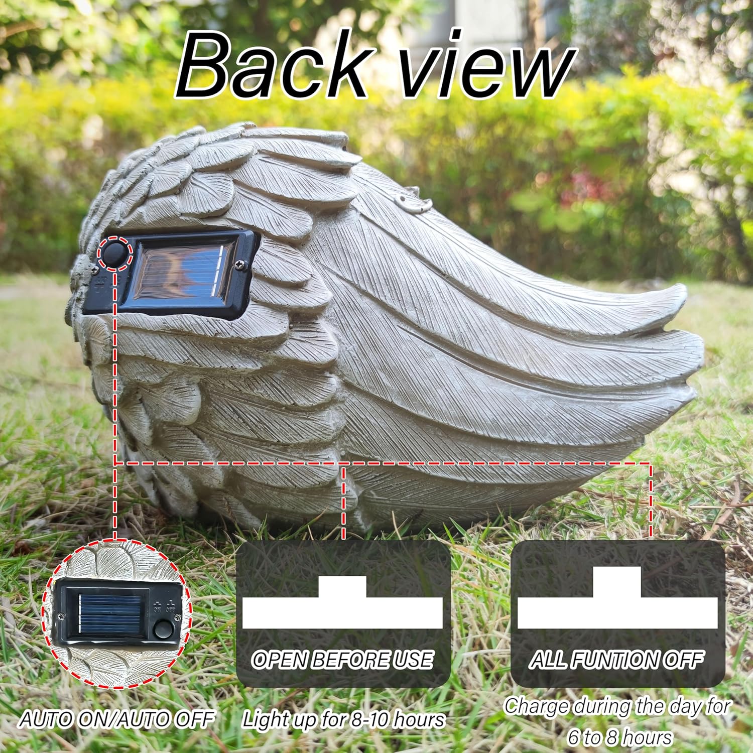 • This Angel cat statue decoration is equipped with a solar panel on the back of the angel cat statue. Turn the switch to the "ON" position before first use and keep charging for 6-8 hours the sun.Open the button to charge during the day, and you can open the button to use at night. This pet memorial stone can be placed in any outdoor setting without worrying about damage from the elements.