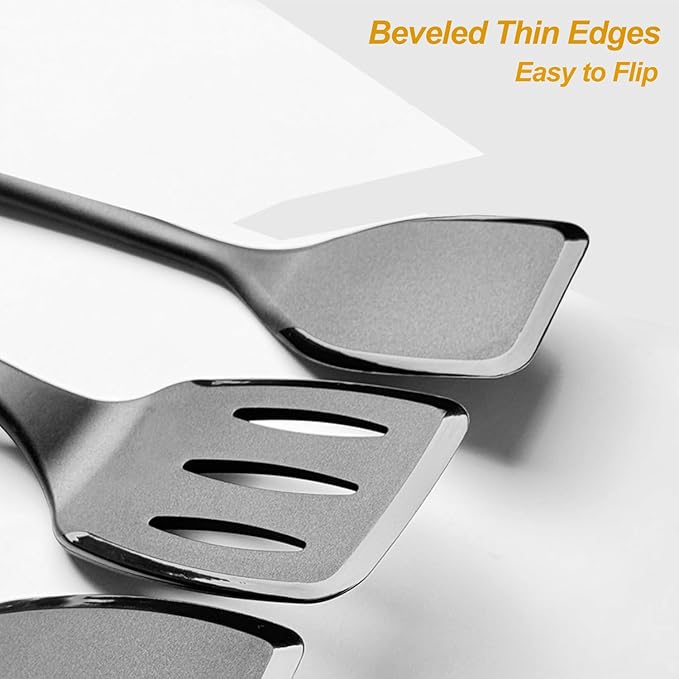 • Easy to Use: This set of cooking utensils spatulas has flexible blade and beveled thin edge, easier to slide under foods